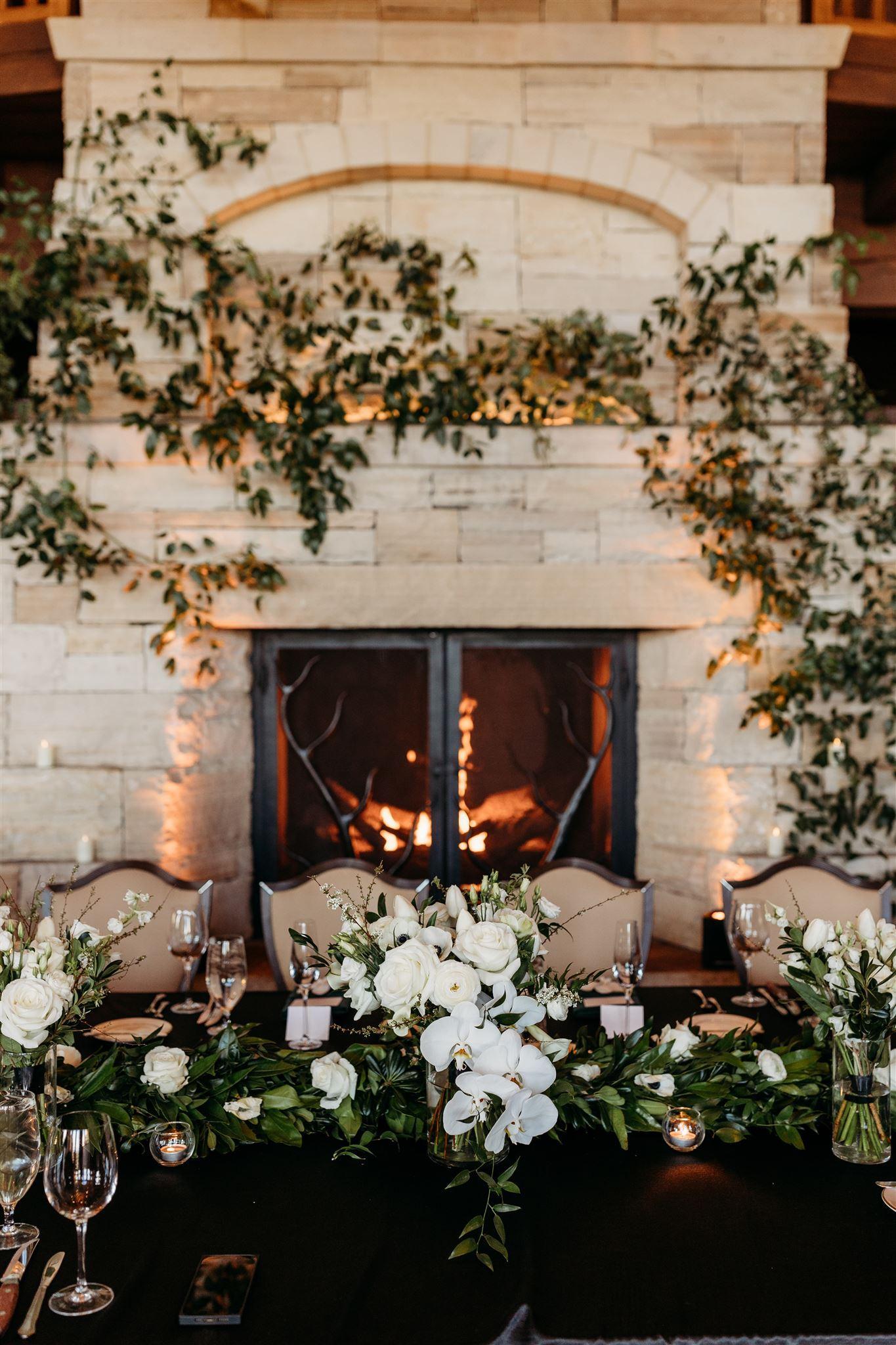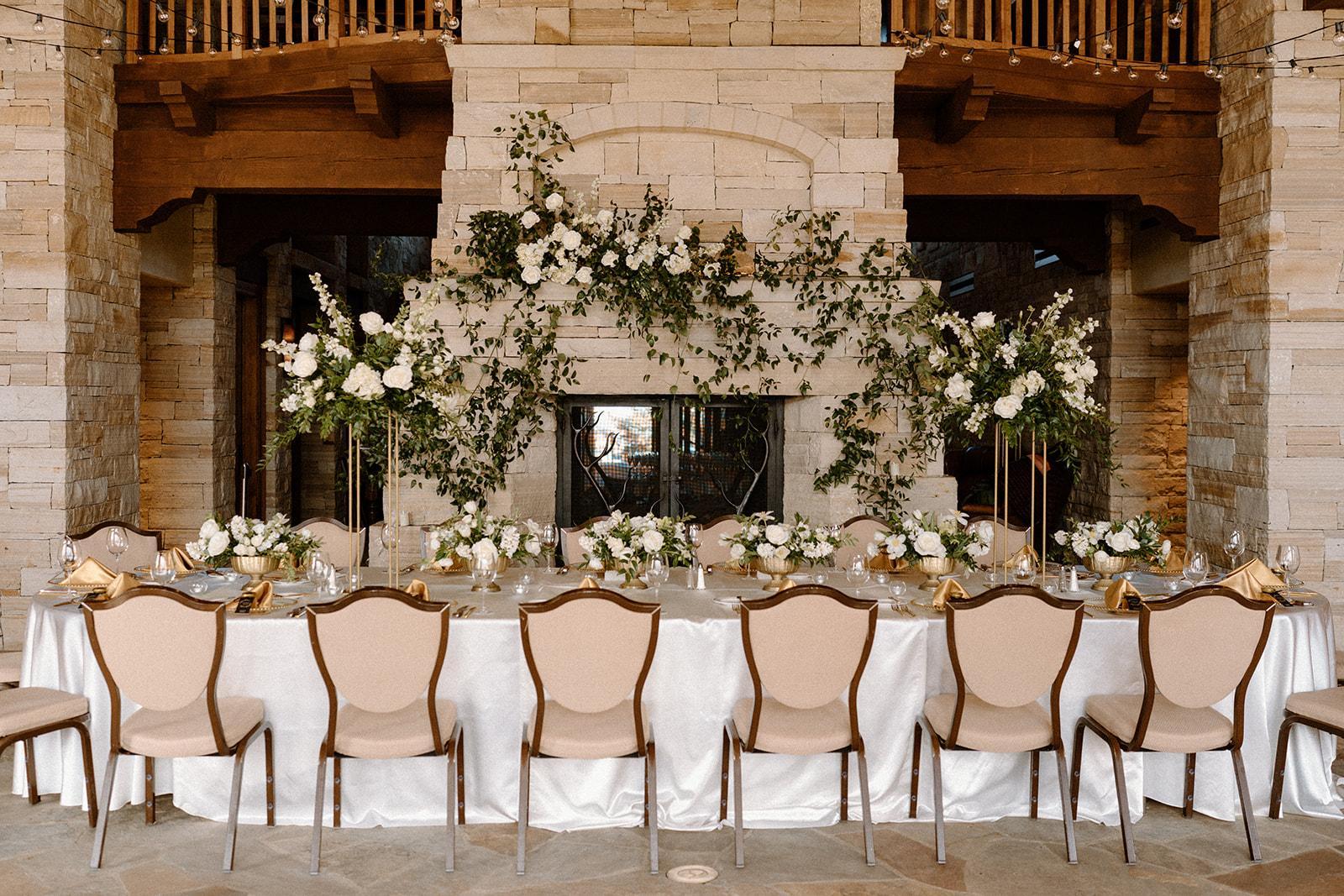 After the ceremony and cocktail hour, guests will be invited inside to take their seats. Once everyone is settled, the celebration begins with a grand entrance by the bridal party, followed by a heartfelt welcome or prayer. Guests will then enjoy an elegant dining experience with breathtaking mountain views. As dinner winds down, toasts and speeches bring warmth and laughter, leading into the cake cutting. In cooler months, the festivities continue with indoor dancing to cap off the evening.