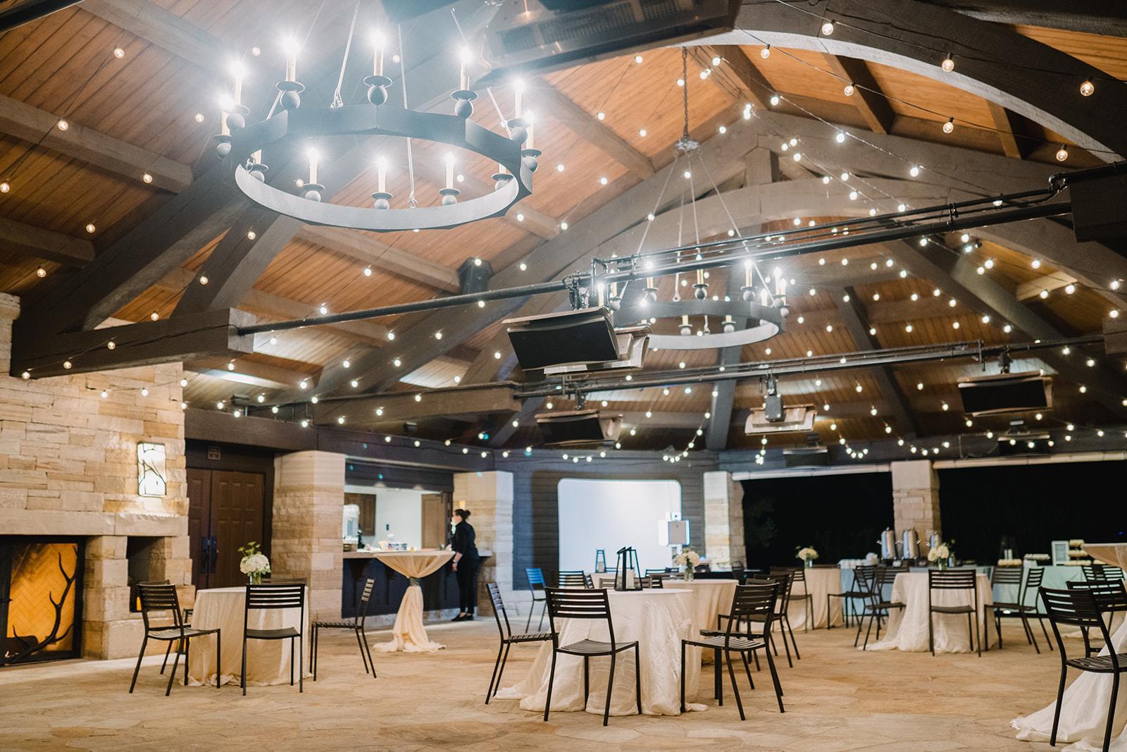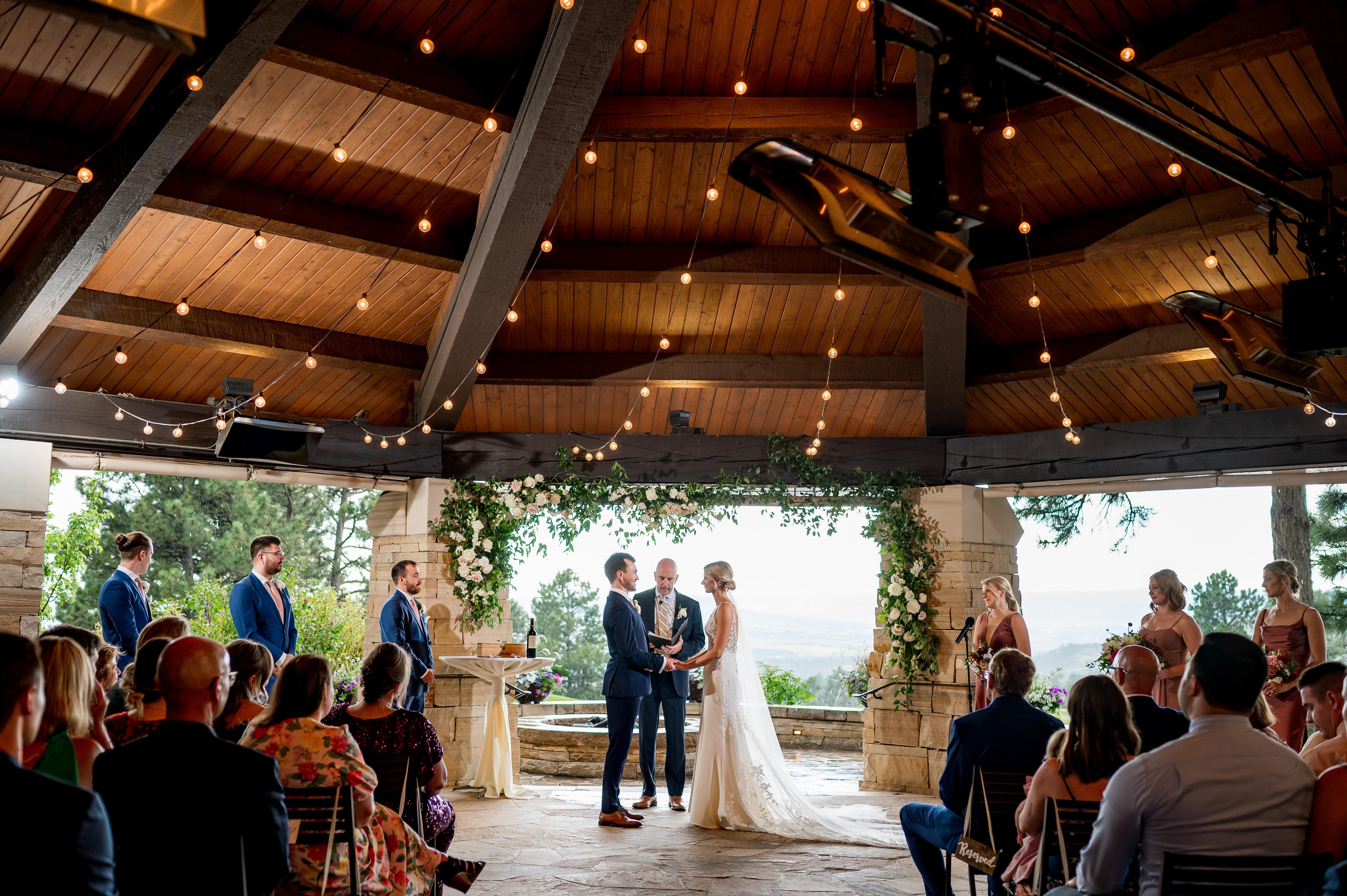 The Pavilion, where your ceremony takes place, offers a stunning backdrop of Pikes Peak, with heaters and retractable sides for comfort. After dining in the Great Room, guests return to the Pavilion in warmer months for dancing, drinks, cake, and desserts. A late-night snack may also be served to keep the celebration going!