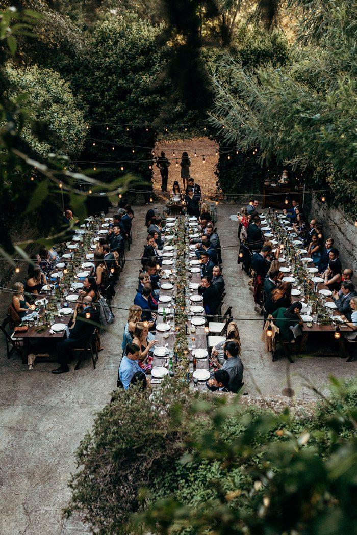 This is the best space for dinner for 80 - 150 guests... spacious, shaded at dinner time, cafe lighting overhead, with greenery surrounding the space.