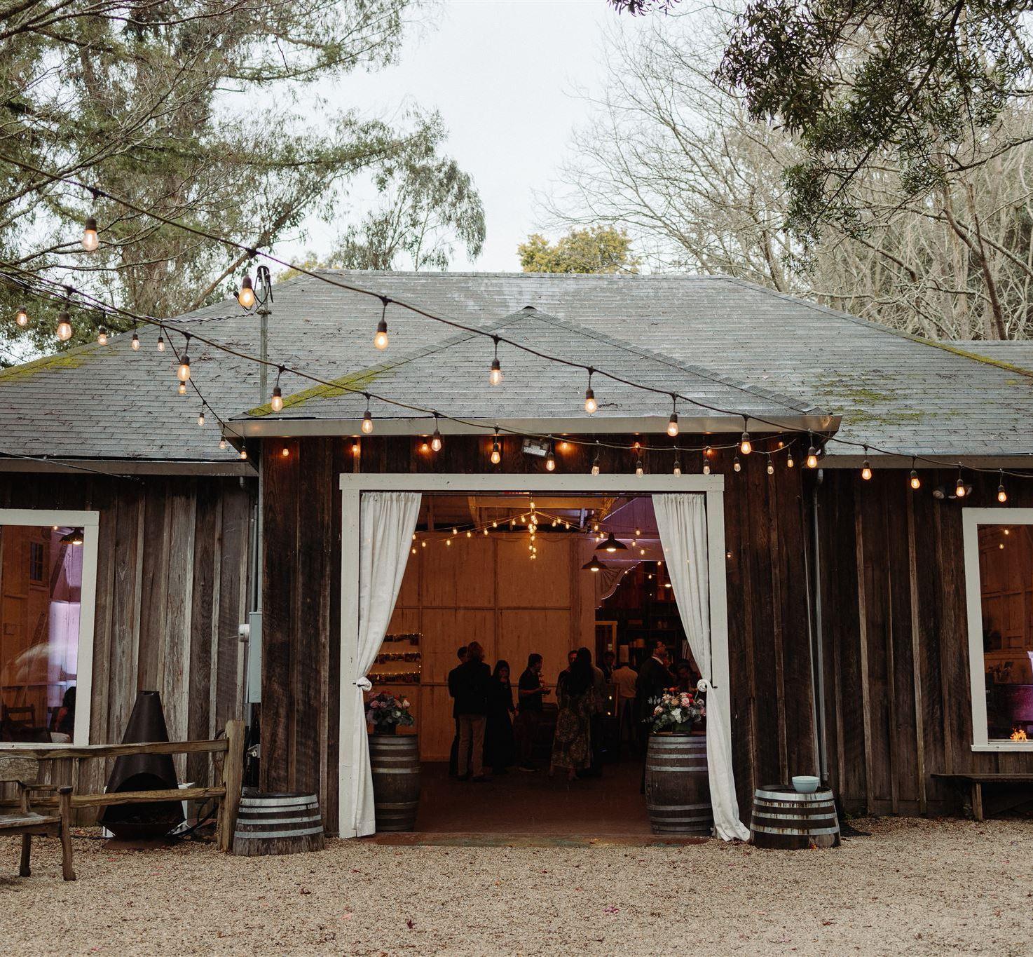 EFFORTLESS & DELICIOUS WEDDINGS Weddings at Sand Rock Farm are magical! Guests love the unique, historic setting and clients love the curated vendor services that allow them to relax and enjoy the planning process leading to a beautiful and effortless wedding day. Your experienced and professional wedding planning and coordination team will ensure a seamless event down to every last delicious detail. Weddings include wedding design, planning and coordination, exclusive use of all Sand Rock Farm venue spaces for six hours of event time, complimentary custom wedding cake, cafe lighting, wine barrel cocktail tables, rustic wood bars, fire pit lounge, restrooms, and venue management. Clients work with preferred vendors for catering, sound/music, floral design and shuttle services. A lodging buyout is optional. Sand Rock Farm is also a great location for romantic elopements, engagement photo shoots, retreats, corporate events and film shoots.