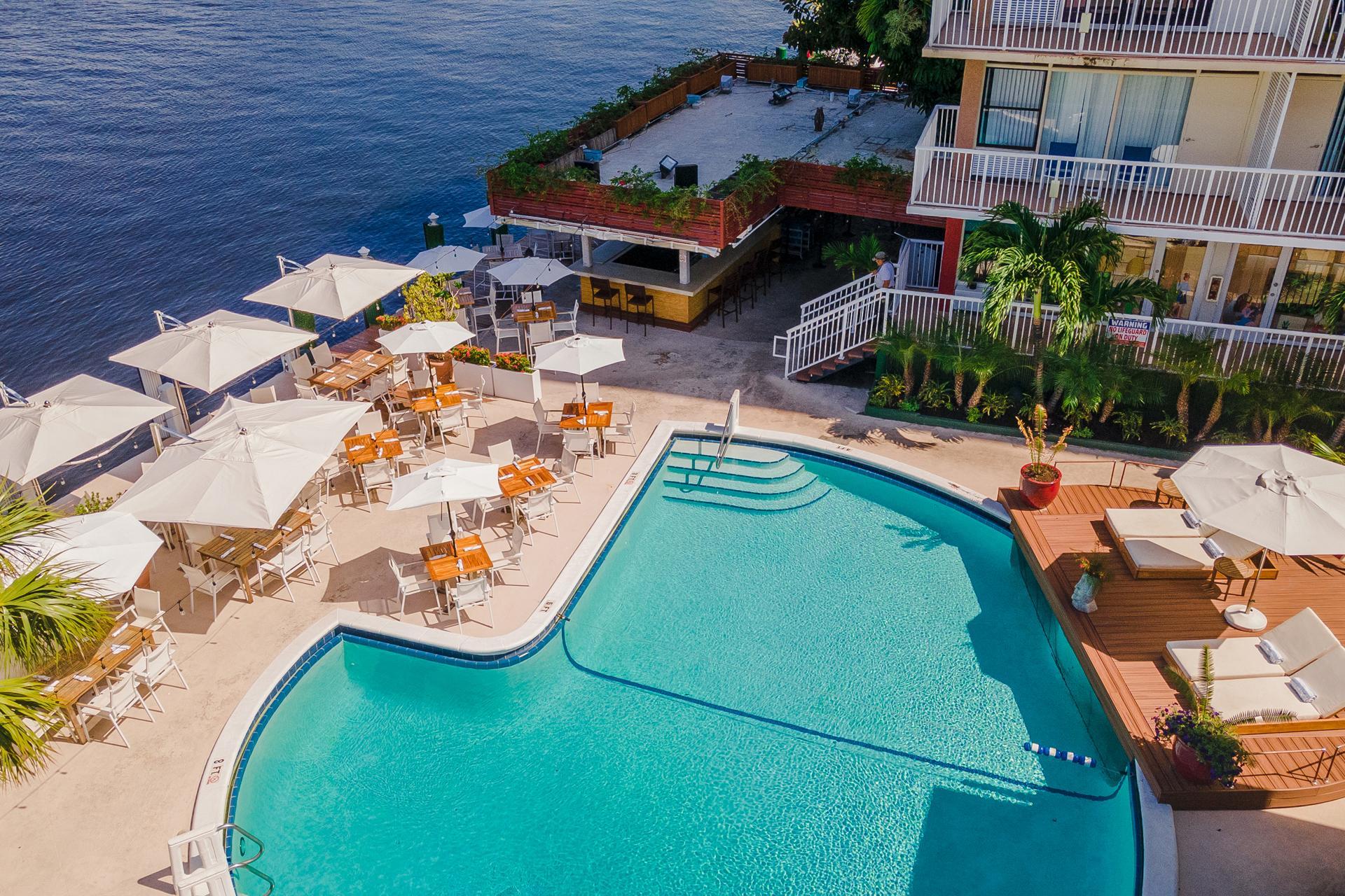 Waterfront Dining with outdoor pool and VIP Island for ceremony
