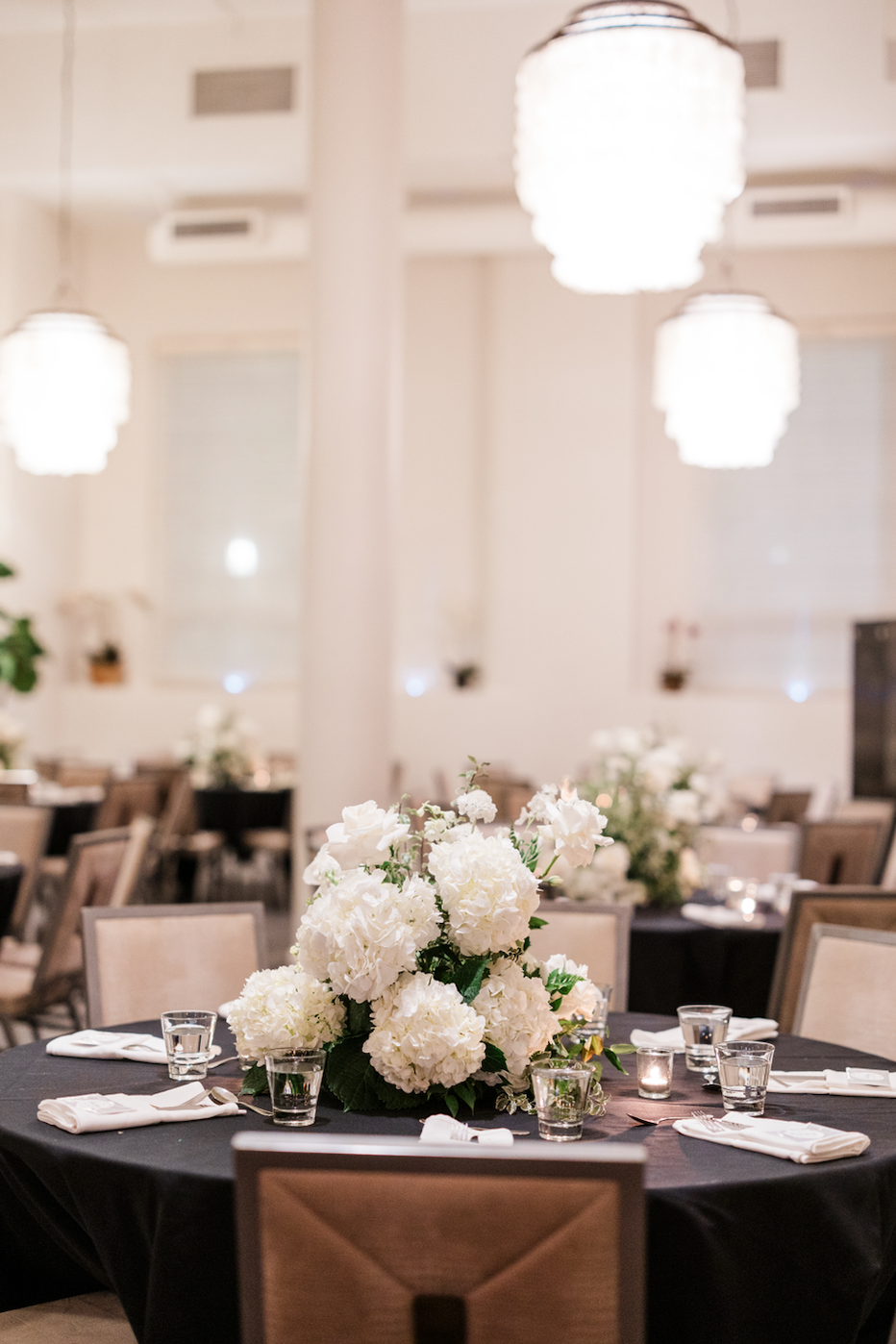 -Chandeliers with dimmers for light customization -60" Round tables -Cushioned chairs -Restrooms -Central heat & AC