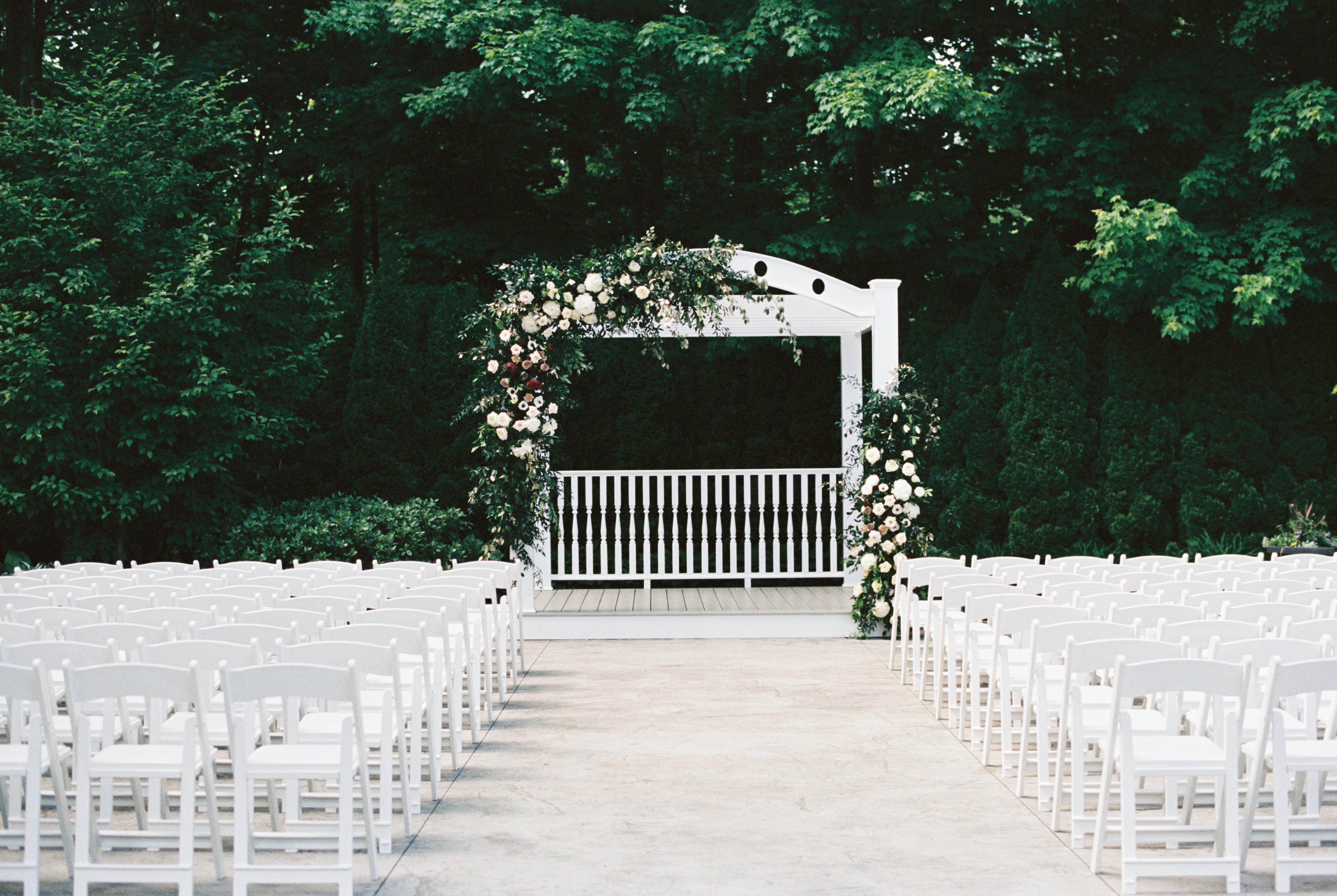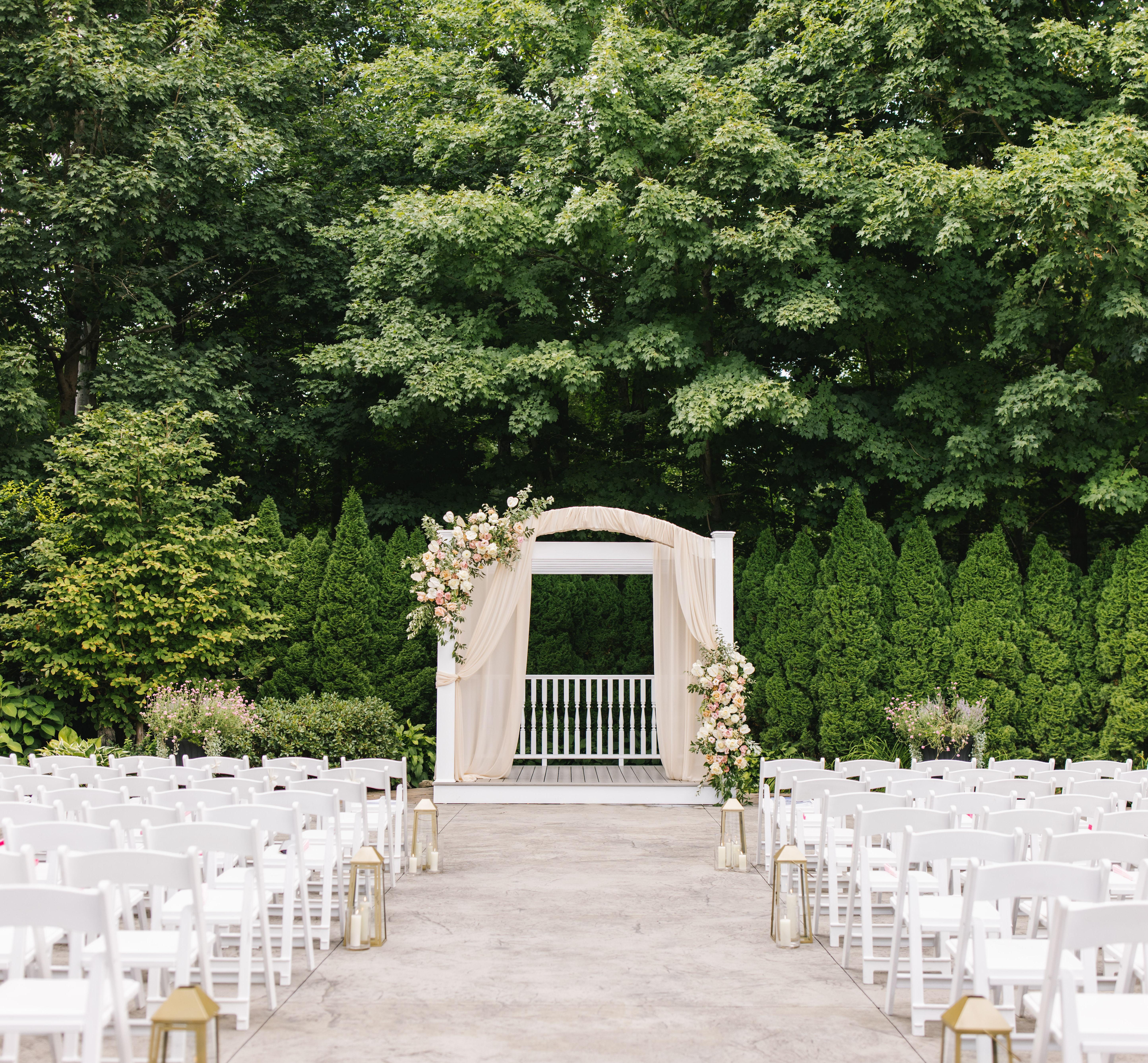 Your love story begins in our lush courtyard! Say "I do" surrounded by family and friends amidst the beautifully landscaped gardens and picturesque woods. Nestled in between the estate's main building and separate cocktail space, it's the perfect location for an outdoor ceremony as well as cocktail hour.