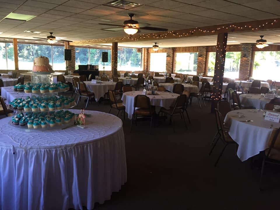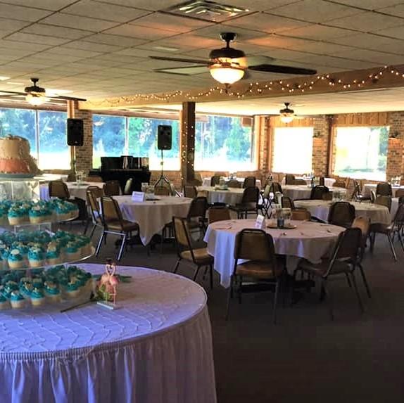 Our banquet facilities are nestled in 800 rolling, wooded acres providing the perfect atmosphere and ideal setting for weddings, family reunions, group gatherings, special events, and much more! We offer banquet facilities from a complete wedding ceremony and reception or other special event to a luncheon meeting and anything in between. Our wedding rental includes use of the facility on Friday to decorate and rehearse and Saturday for the ceremony and reception. We have 300 chairs and 30 round tables in our dining area and 15 cocktail tables with chairs around the dance floor on the upper level.
