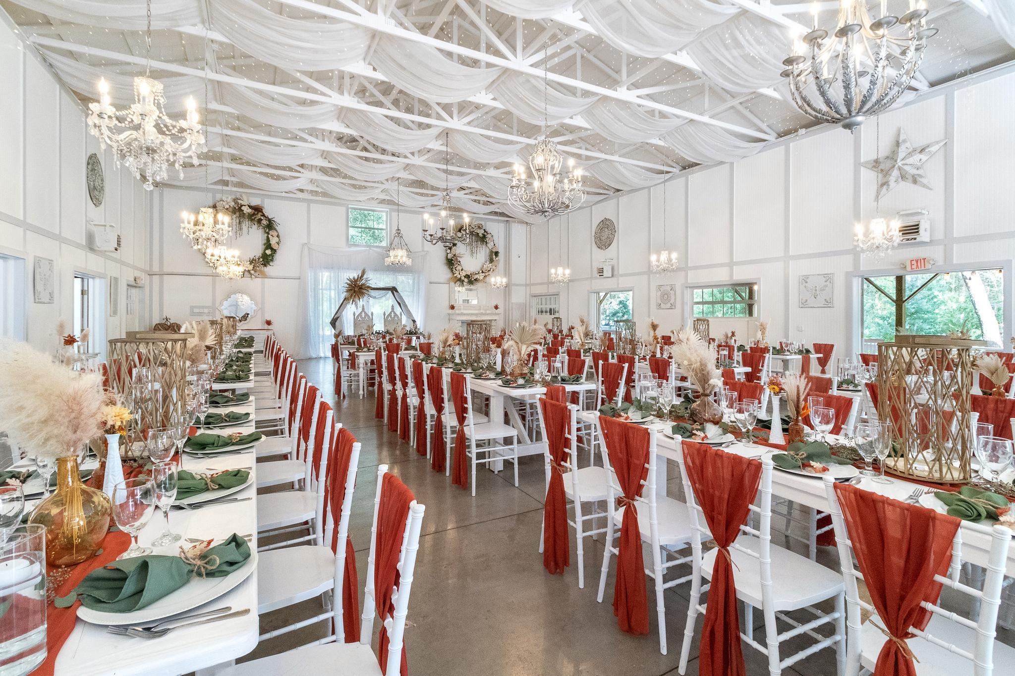 Begin your love story at Saxon Manor in Brooksville, FL, where timeless beauty meets unmatched charm. Nestled among lush lawns and majestic oaks draped in Spanish moss, Saxon Manor offers three stunning venues to make your wedding day unforgettable. The Manor Barn exudes rustic elegance, complete with chandeliers, drapery, and a romantic ambiance perfect for grand celebrations. The Garden Room offers a sophisticated indoor space with floor-to-ceiling windows, draped ceilings, and timeless charm for a classic reception. For intimate gatherings, the Boho Room blends relaxed elegance with nature-inspired details, ideal for micro or more intimate weddings. As a family-owned and operated venue, we take pride in delivering a true all-inclusive experience, seamlessly handling every detail. Located just 45 minutes from Tampa and 90 minutes from Orlando, Saxon Manor is where dream weddings come to life.