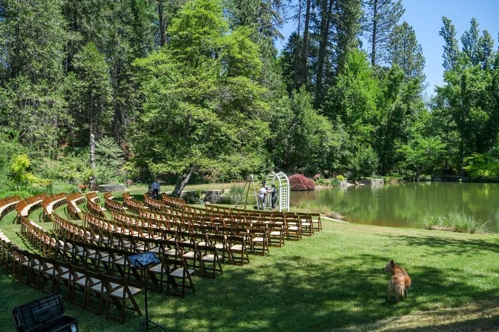 Just minutes from downtown historic Nevada City, you'll find Schrammsberg Estate. Our seven sprawling acres invite you to explore lush lawns, romantic meandering pathways, and a peaceful pond, offering an idyllic escape right in town.
