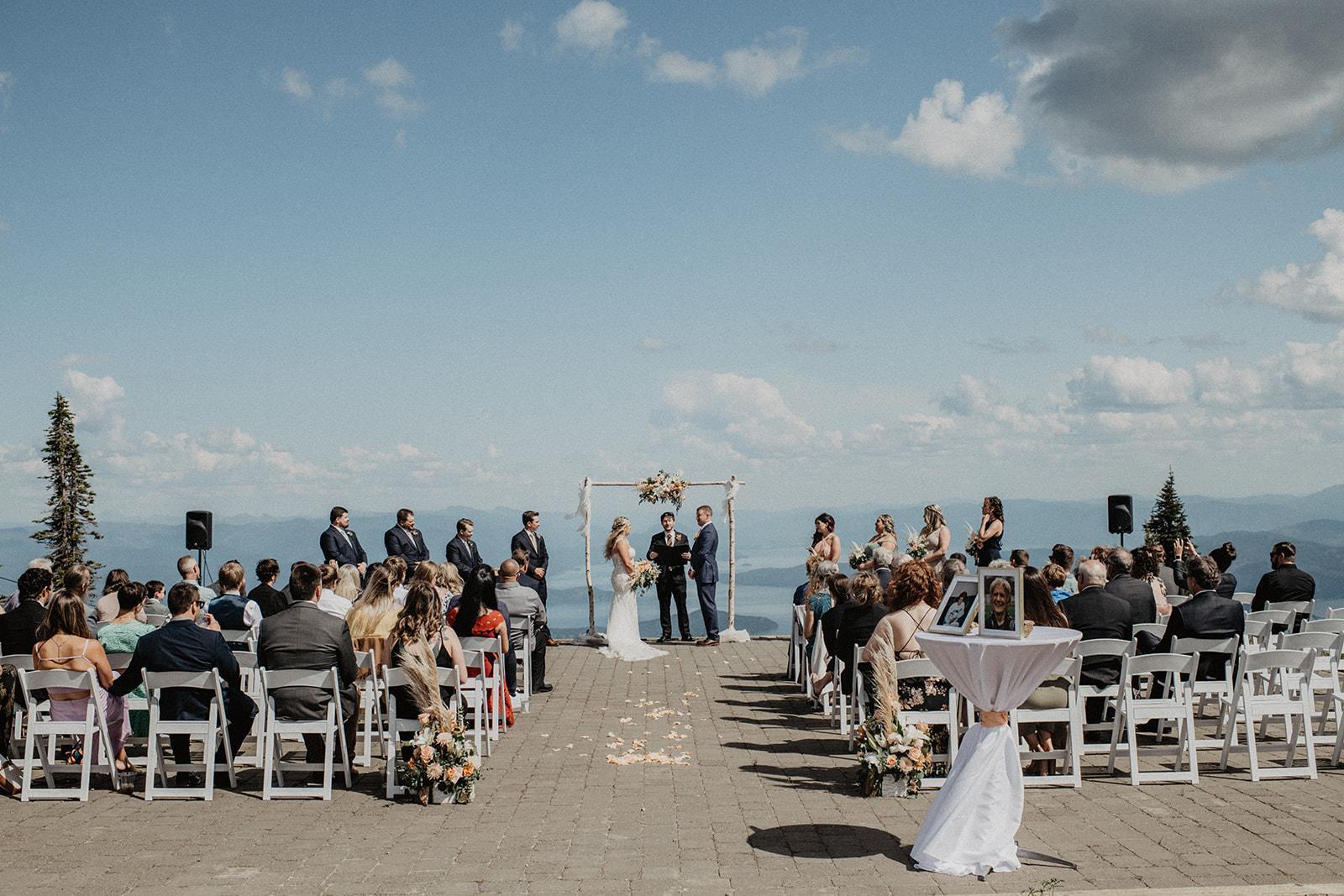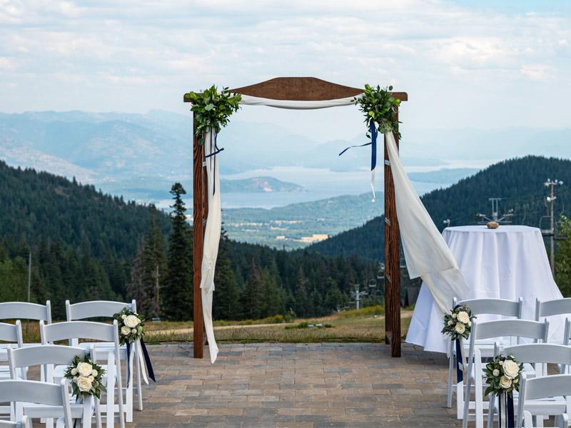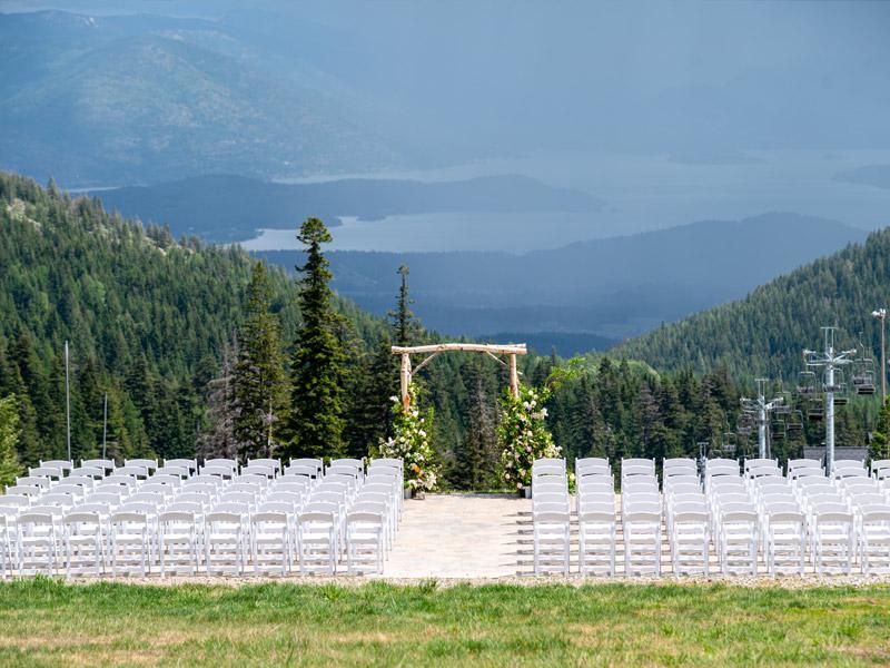 Considered by many as the best skiing in Idaho and the best family-friendly resort in the Pacific Northwest, Schweitzer is a four-season resort and wedding venue nestled in the Selkirk Mountains of Sandpoint, ID. Breathtaking views of sparkling Lake Pend Oreille and three mountain ranges await you at this one-of-a-kind mountain wedding venue. Celebrate your "Happily Ever After" on top of the world with a mountain top wedding ceremony, mountain lodge reception, on-site lodging, and phenomenal food all conveniently located within walking distance to Schweitzer Village.