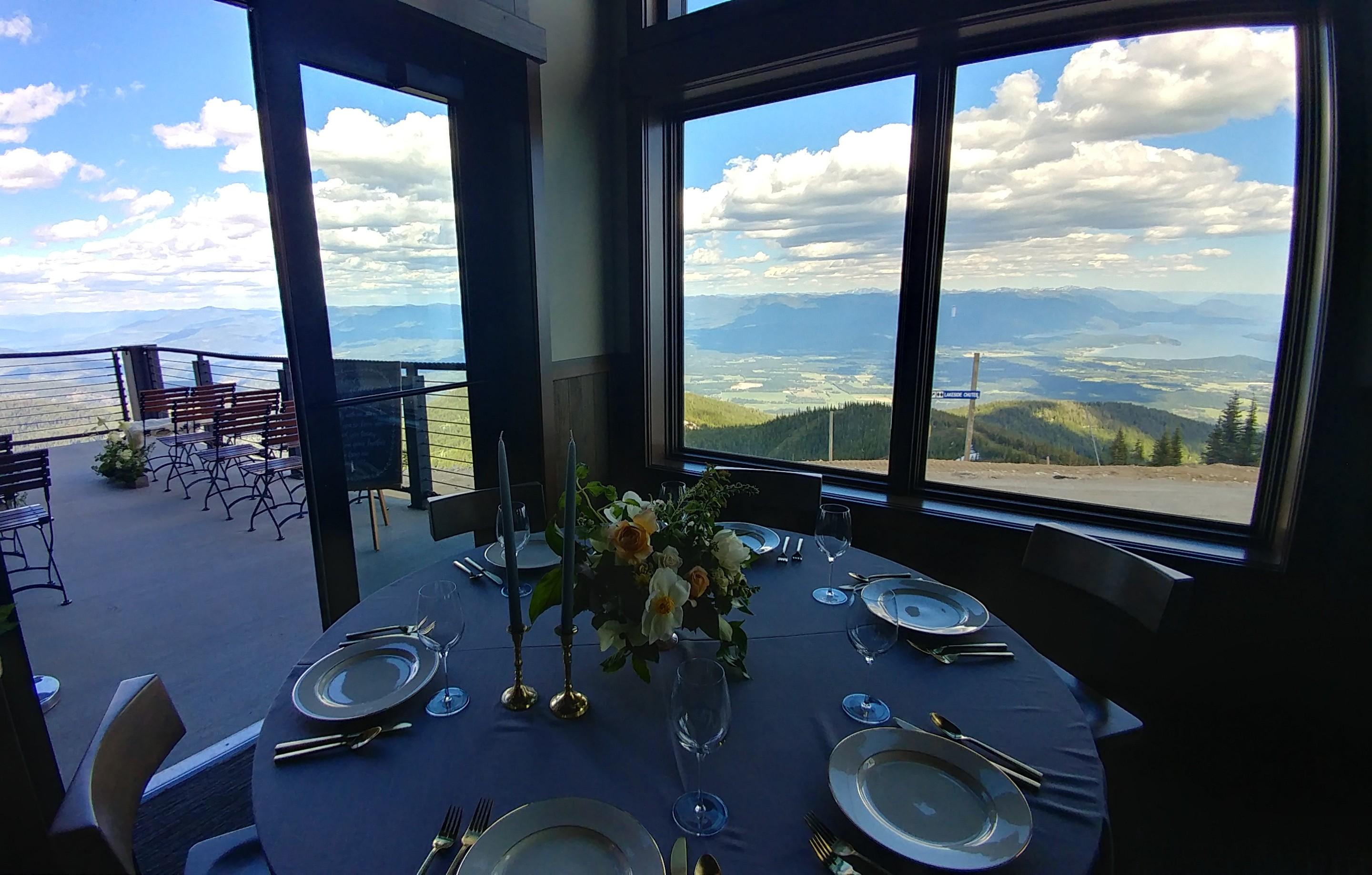 The Caribou Room is Schweitzer’s ideal location for winter receptions and rehearsal dinners to accommodate the whole family. It also serves as the weather backup for summer outdoor wedding packages. Classic exposed beam ceilings and stunning views of Lake Pend Oreille make it a versatile and lovely location for any event.