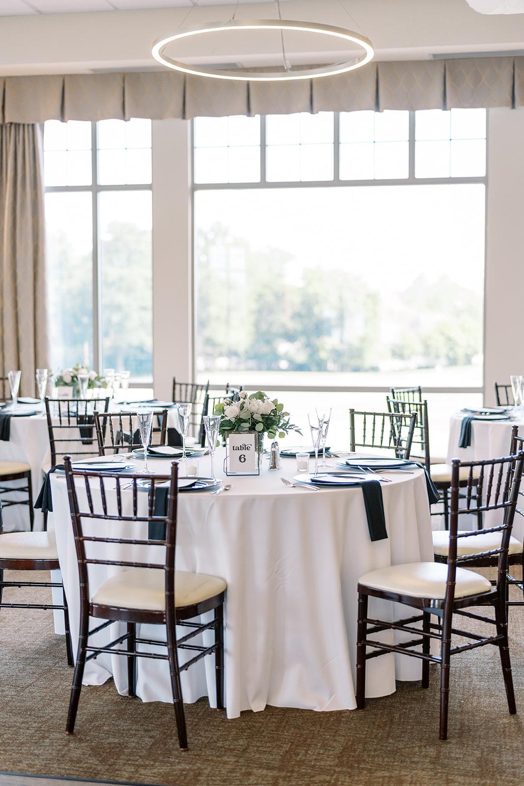 Our ballroom offers a spectacular 200-degree view, with floor-to-ceiling windows, of both our Championship golf course and outdoor ceremony garden.