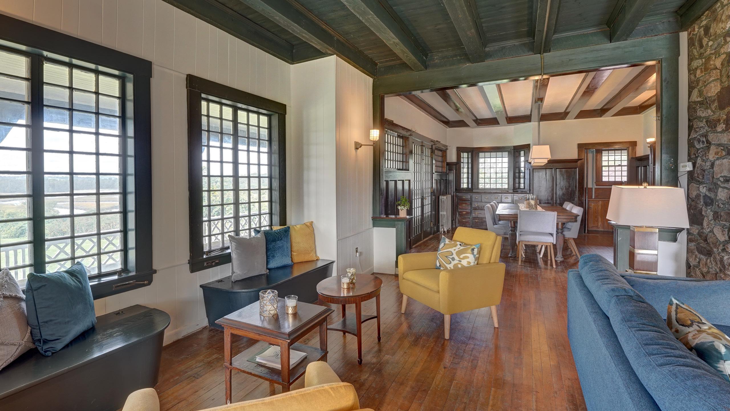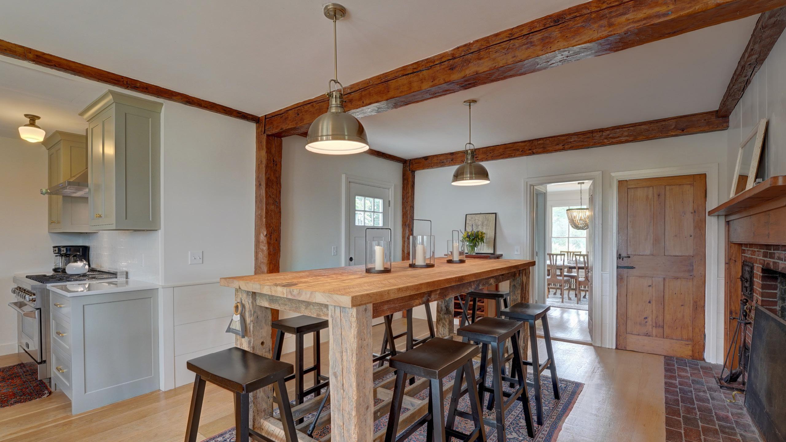 Built in 1732, this New England beauty can accommodate up to 18 of your guests and offers a fully equipped gourmet kitchen, private dining patio with bistro lights, and game room with pool table and darts. The house gets tons of great natural light, and has pastoral views of the river or fields from every window.