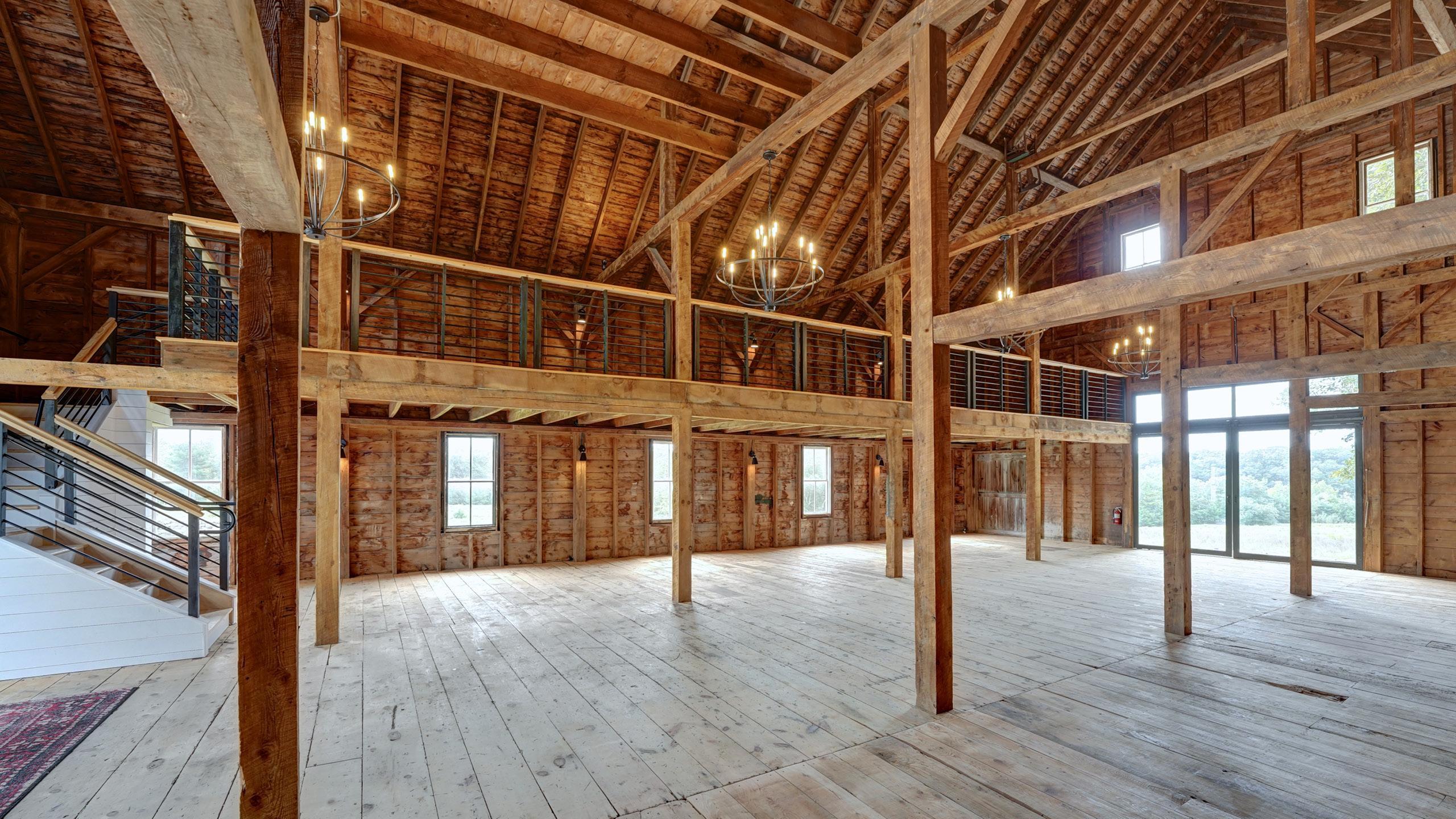 - 2400 square foot ground level, plus second level mezzanine - Huge glass doors at each end for optimum views and plenty of natural light - Black iron accents and natural barn wood - Onsite bathrooms - Able to be heated