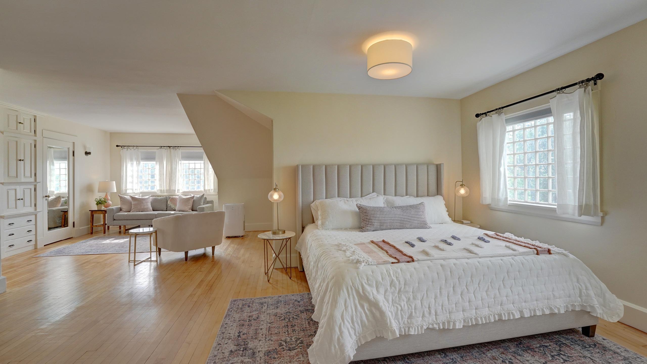 Built in 1908, this craftsman includes a spectacular wrap-around porch, with exquisite views of the river and is a prime spot to watch the sunset. A grand bridal suite and three spacious bedrooms can accommodate up to 8 guests. The bungalow retains all of the original character of turn of the century design, with a modern, comfortable vibe.