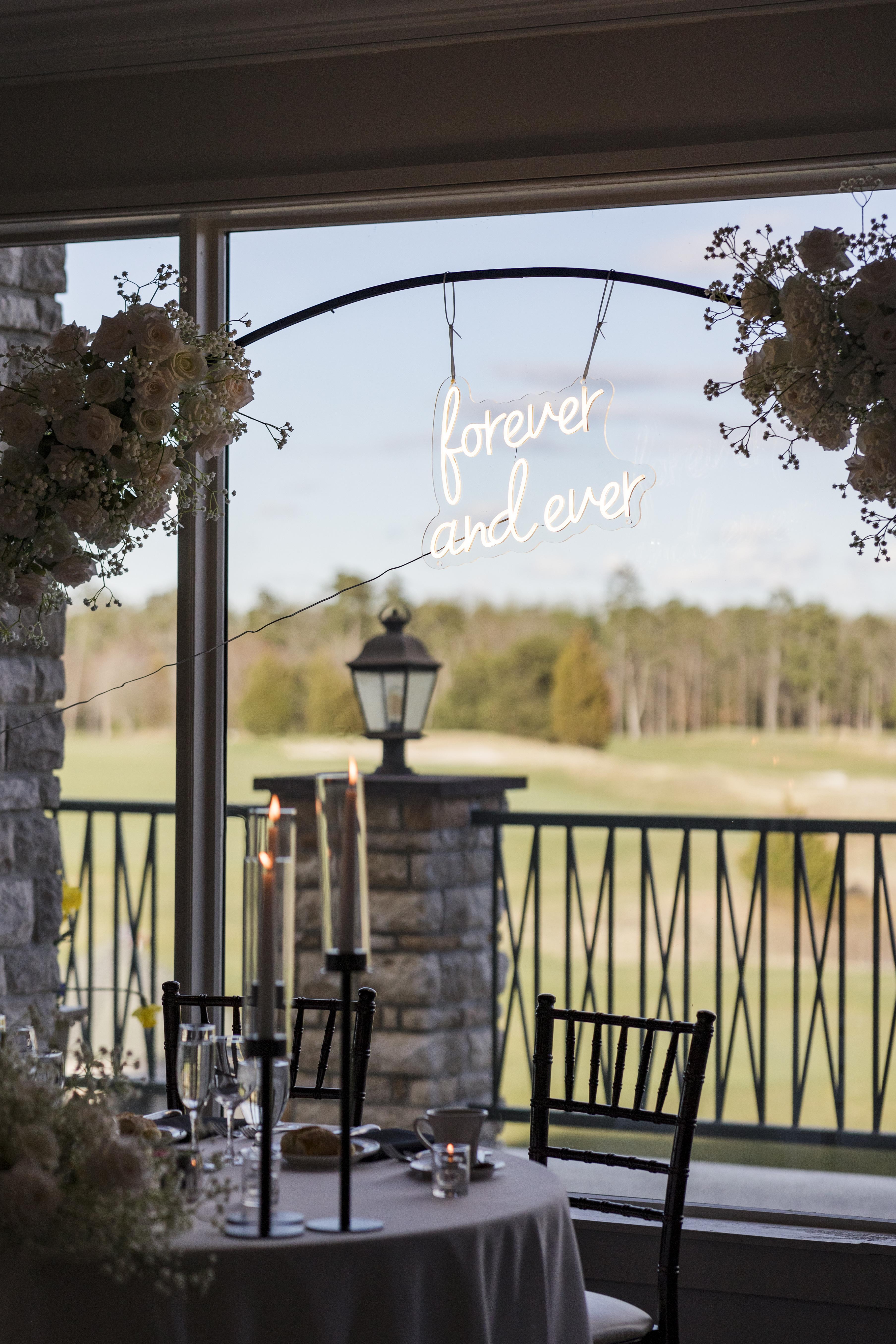 Our Ballroom will sweep you off your feet, with rich hardwood floors and floor-to-ceiling windows providing stunning views of the golf course.