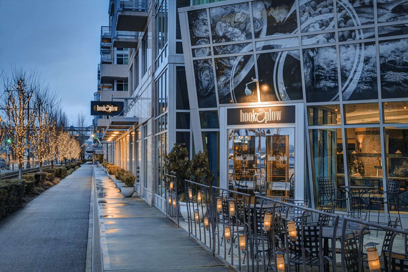 With breathtaking views of Elliott Bay, Hook & Plow Restaurant combines a stylish dining room, a dance floor, and a spacious outdoor patio. This vibrant venue can comfortably host 130 guests, ideal for a seamless indoor/outdoor experience.