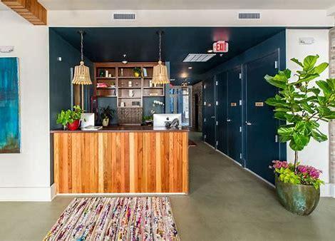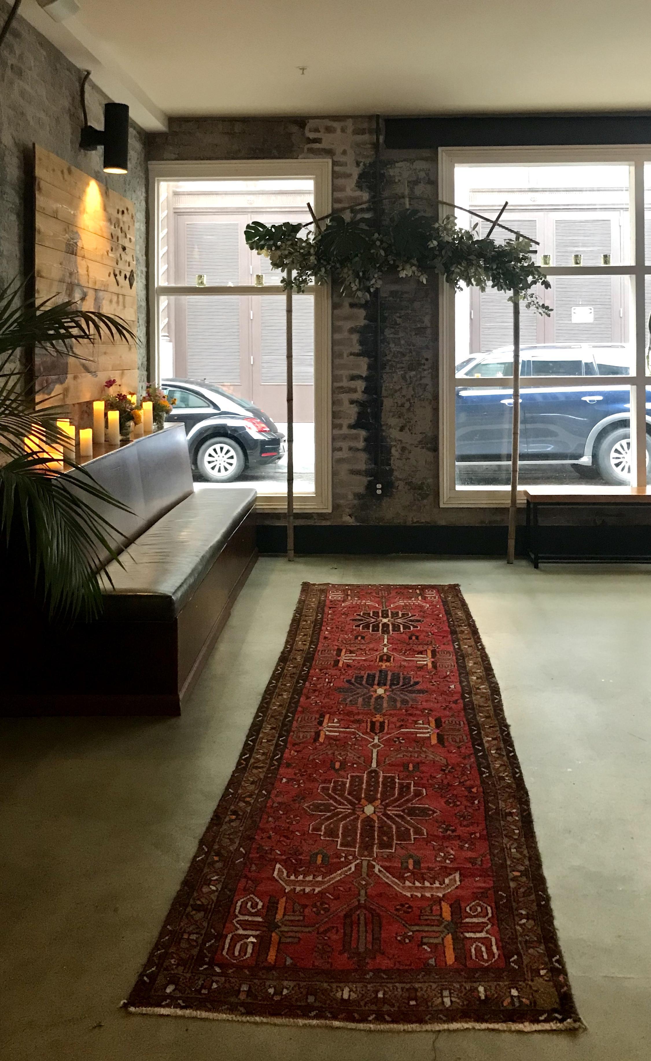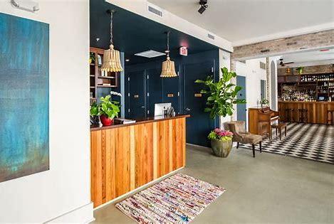 Lobby and bar with a modern rustic feel that welcomes you in with delightful lighting and music