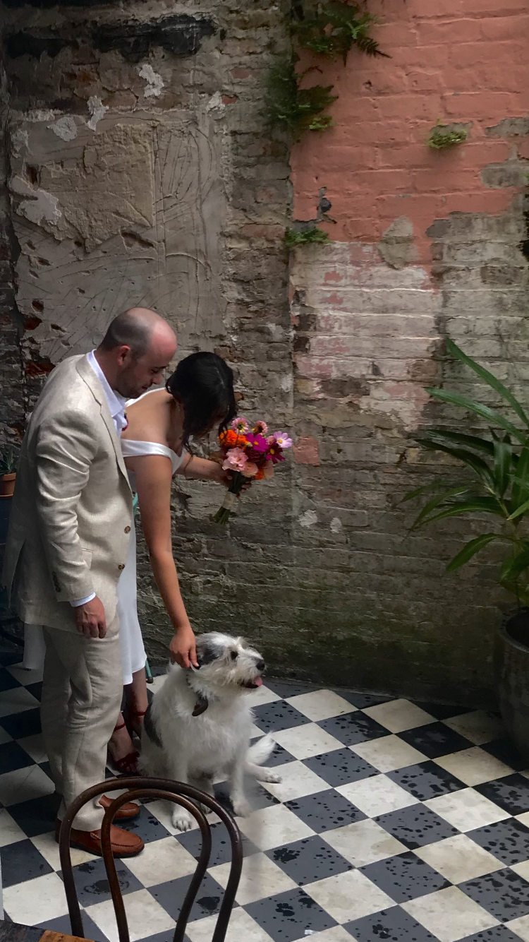 This space is great for small gatherings and meals. The beautiful checkered floors and exposed bricks make wedding pictures beautiful and stand out. Lady Catahoula stands tall on one of our walls that goes all the way up to the roof. She is a great addition for pictures as well.