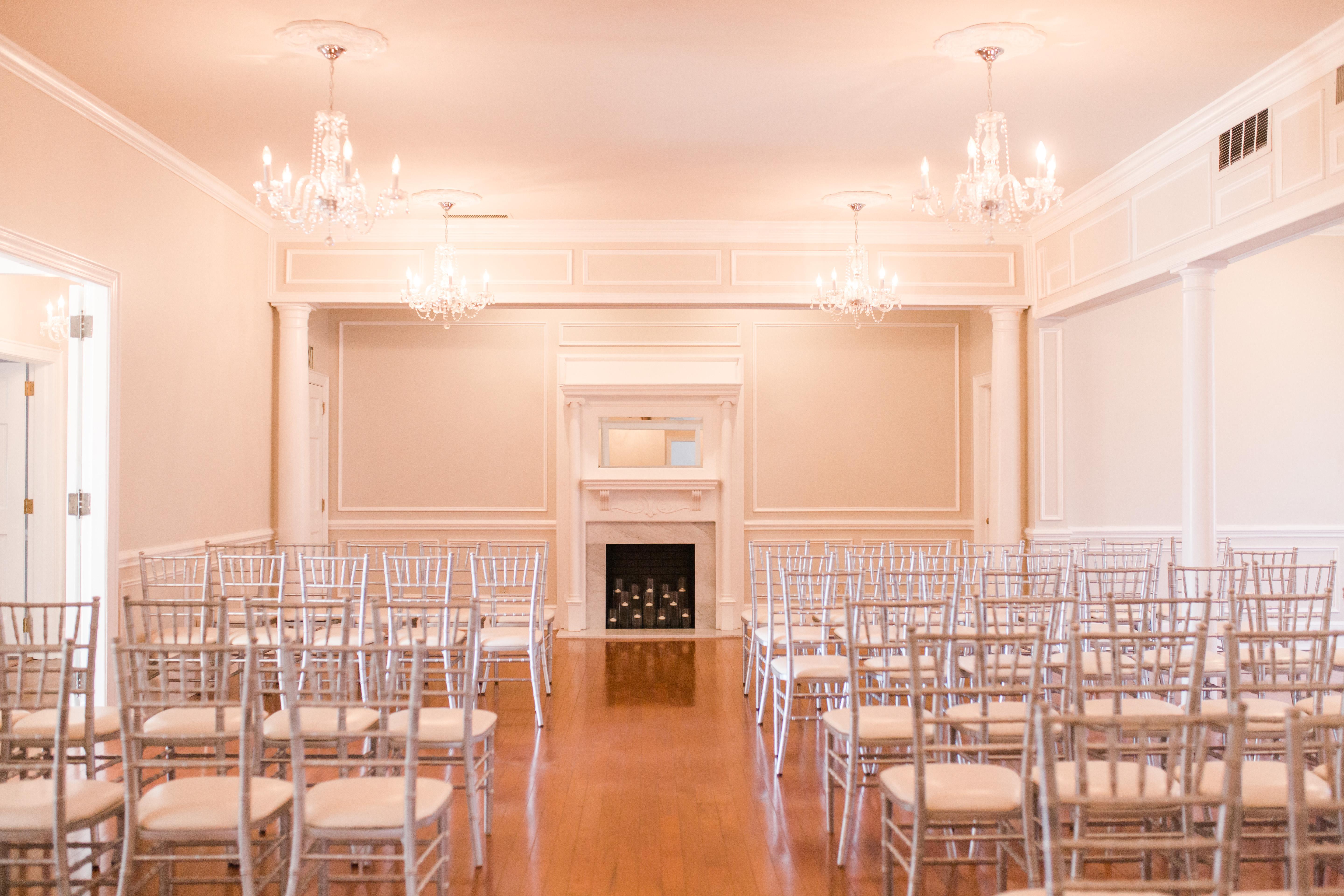 Our Upstairs Ballroom is the perfect space for an intimate ceremony, cocktail hour, or overflow seating for reception. The space can accommodate 100 guests for cocktail hour and 120 guests for ceremony. The space features chandeliers, wood floors, French doors, fireplace & pocket doors leading to the Bridal Suite. The Upstairs Ballroom provides a stress free rain back up plan and is a beautiful option!