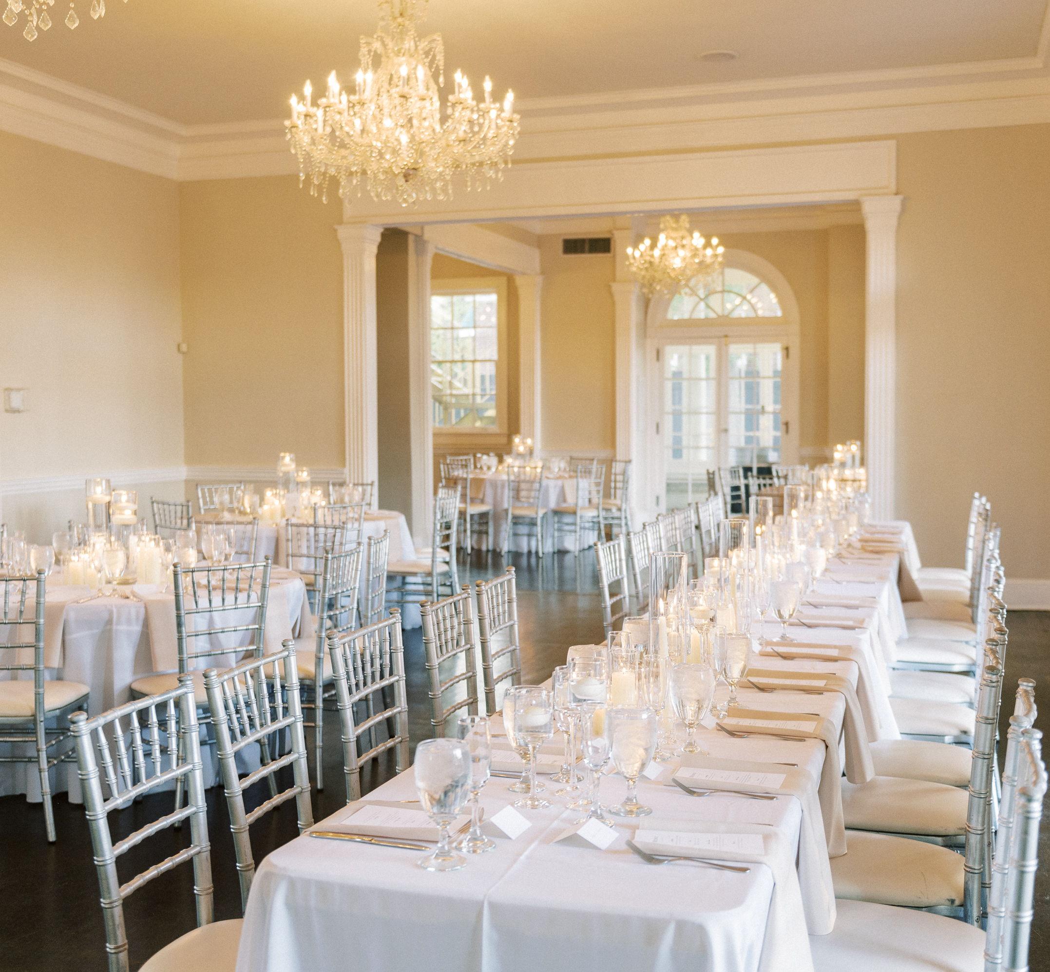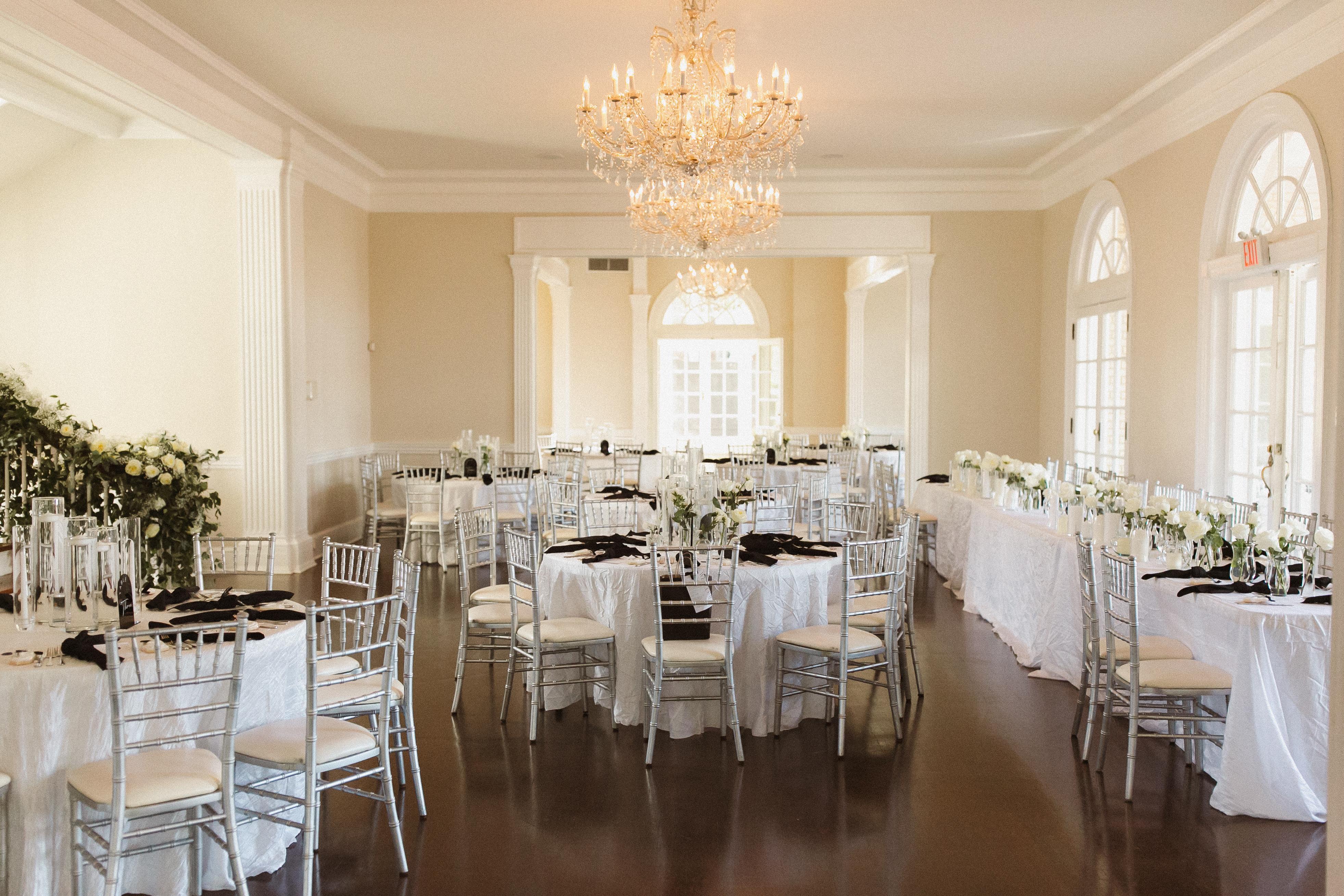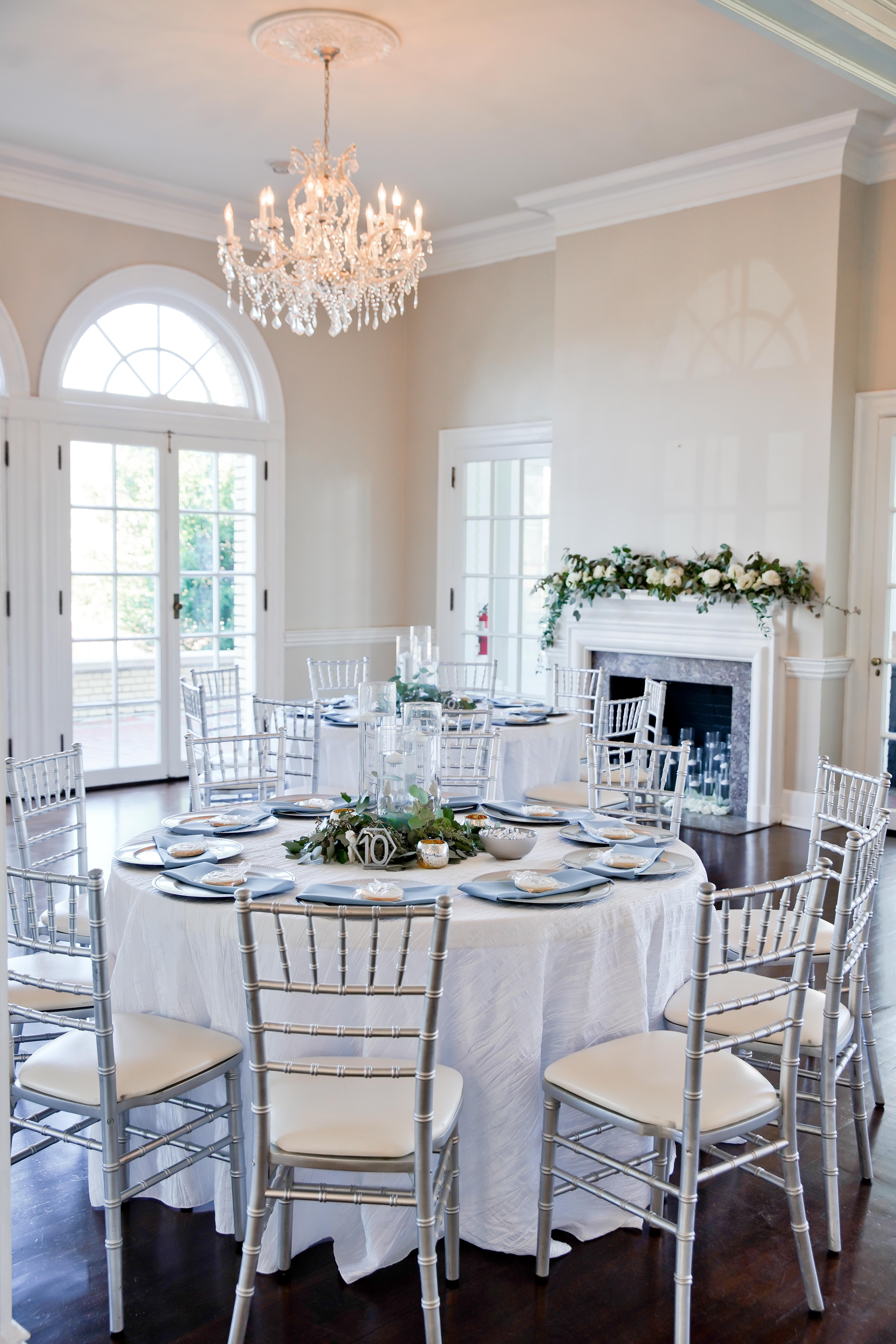 -5 foot round tables -Choice of Premium Linens -Silver Chiavari Chairs -8 foot & 6 foot banquet tables -Choice of Centerpieces for tables -Dimmers for the Chandeliers to set the mood for dancing -Sweetheart Table or Head Table -Outlets throughout the entire space