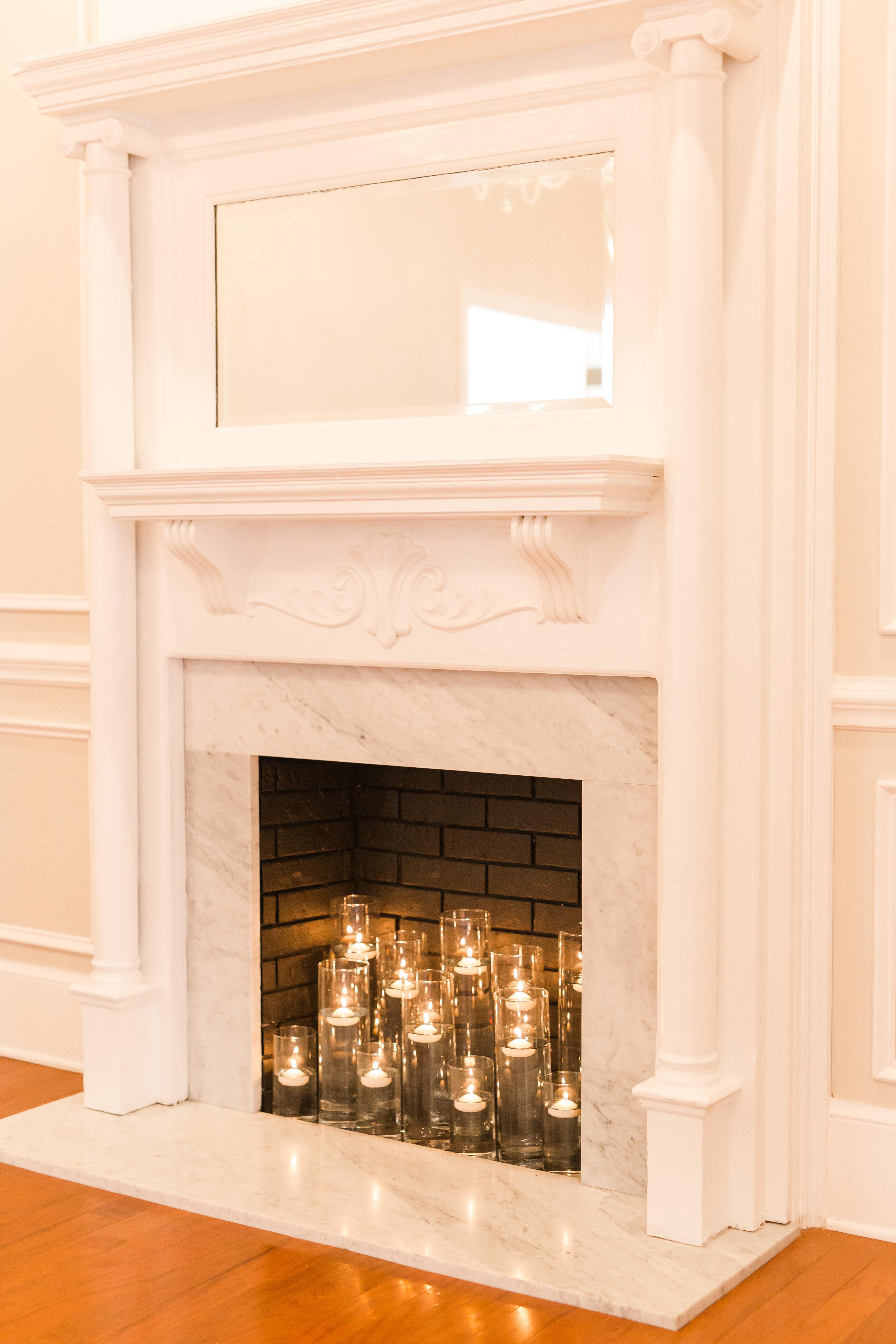 -Fireplace & Mantle with Floating Candles -Silver Chiavari Chairs -Cocktail Tables and 5 foot rounds -Aisle Markers for Ceremony with real White Hydrangeas -Outlets for ceremony music