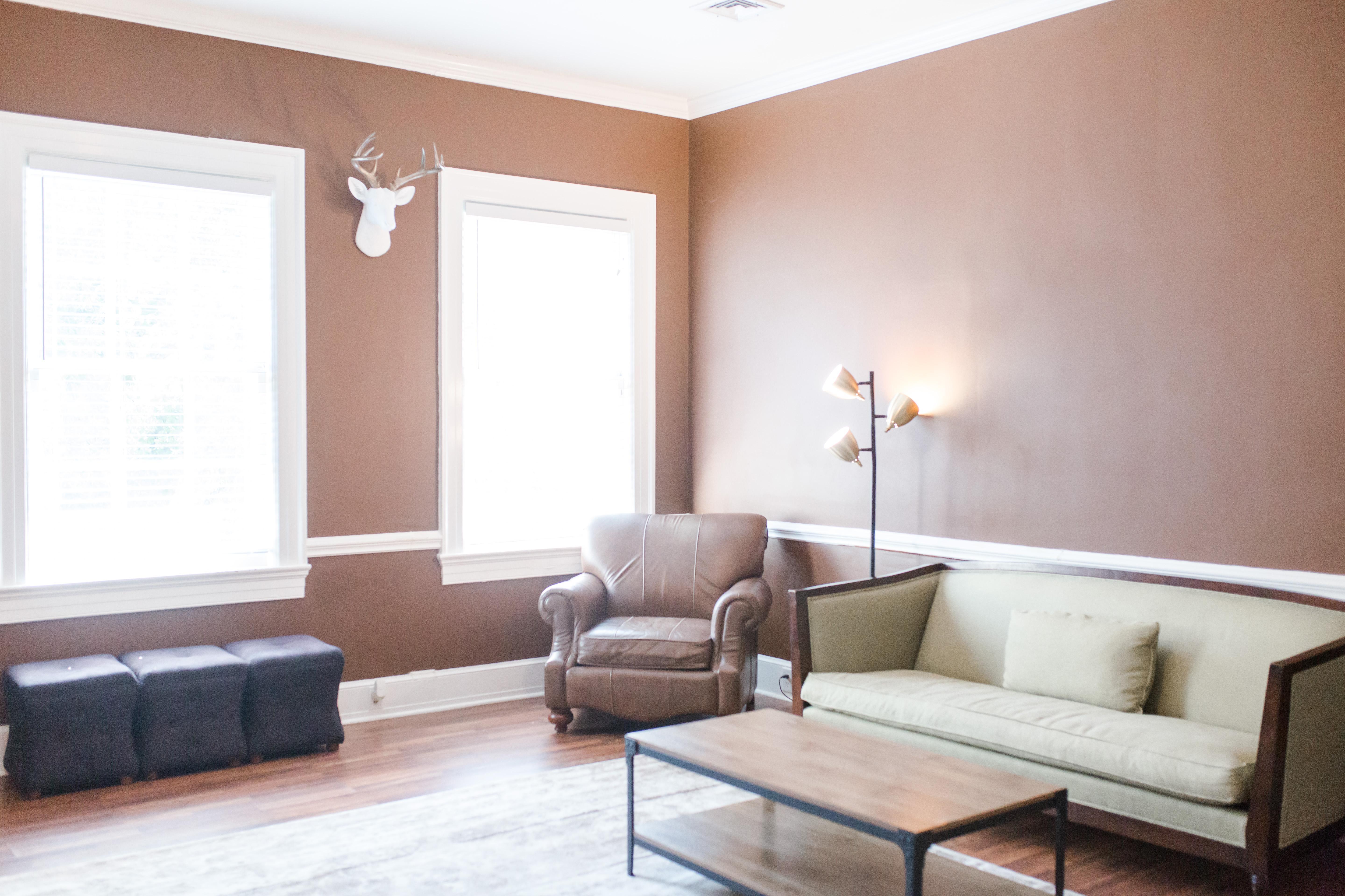 This space is the perfect hangout space for the Groom and his groomsmen. With a TV and bucket of beer, it's sure to keep them occupied on the morning of the Wedding! There is a private restroom and back staircase to make it easy to keep the bride & groom separated. There is a rack to hang up the tuxes and couches for them to relax before it's time to get changed!