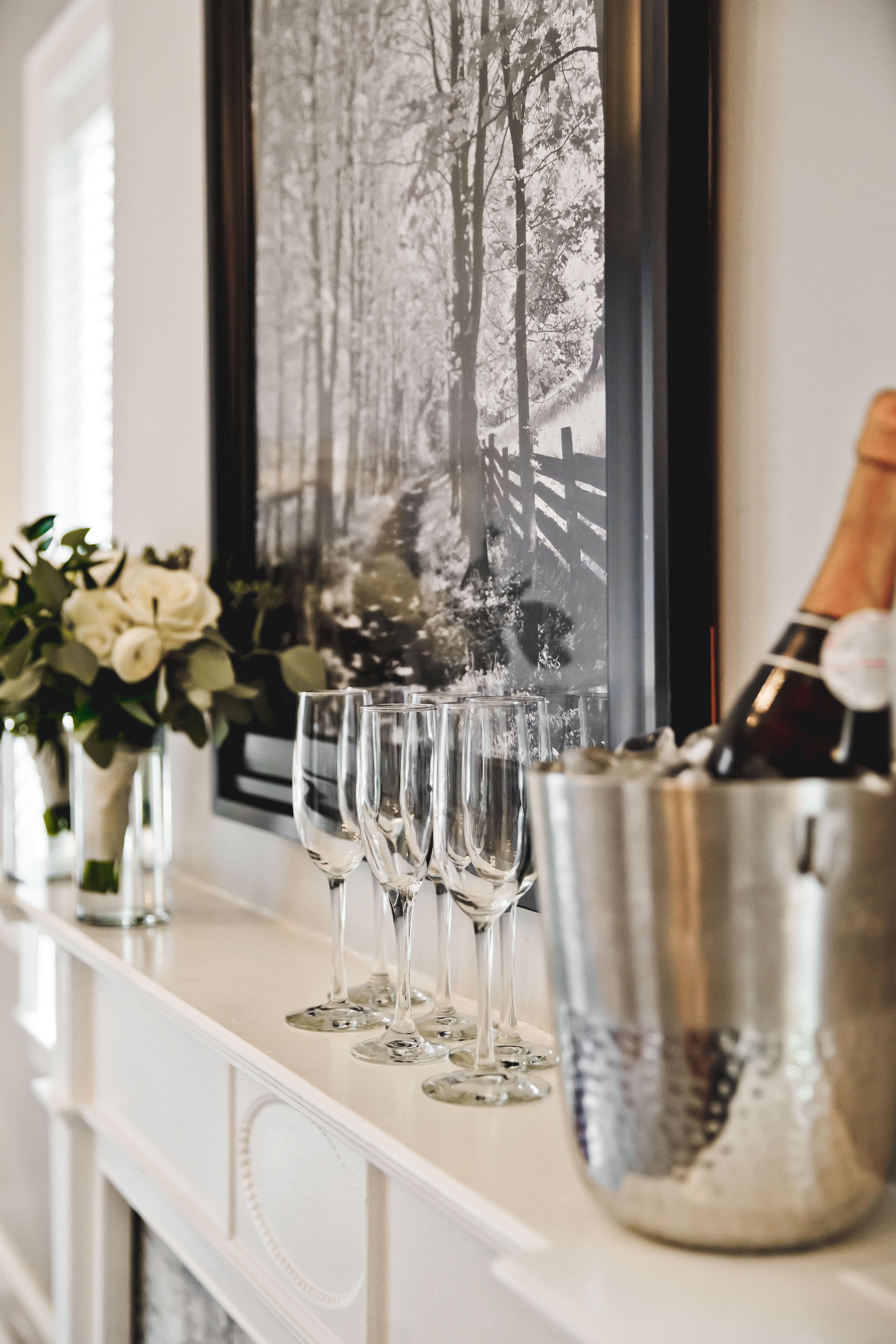 Sip champagne and relax with your girls! The Bridal Suite features two rooms, a large closet, 2 stations with mirrored tables and Chiavari chairs, 2 couches to lounge and relax the morning of your wedding day! One room offers a quiet space for the Bride to relax and enjoy the moments before walking down the aisle and features a large mirror that is perfect for pictures and admiring your beautiful gown.