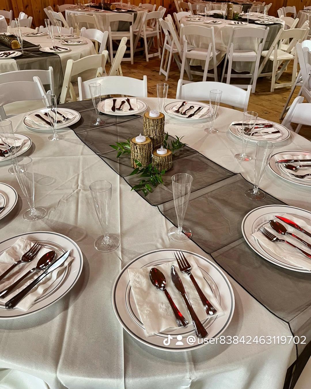 Dimmers on all lighting. Ceiling fans Chairs & Tables Uplighting to match your colors Indoor bathrooms Fully Air Conditioned & Heated. Rustic decorations are included with all rentals. Serendipity Farms does all clean up of garbage and bathrooms/barn.