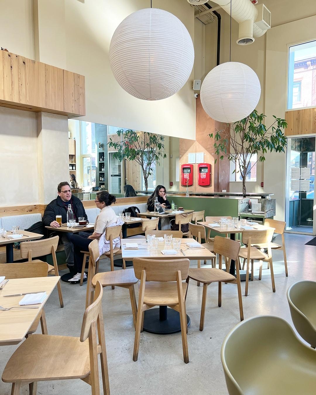 Our bright and airy dining room features 25 foot ceilings and is drenched with natural light. On a great corner in Greenpoint our space is great for welcome parties, rehearsal dinners, small wedding and farewell brunches.
