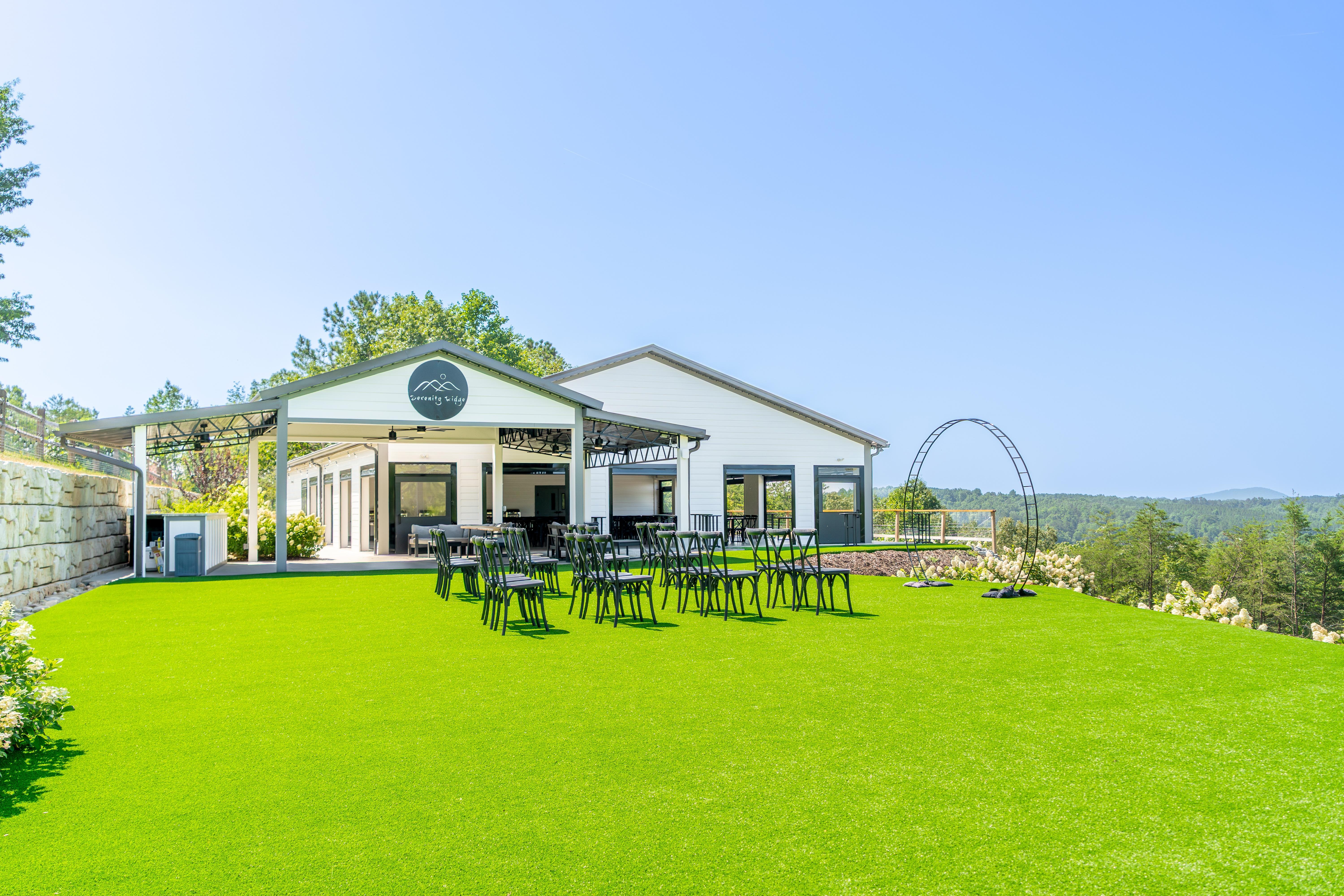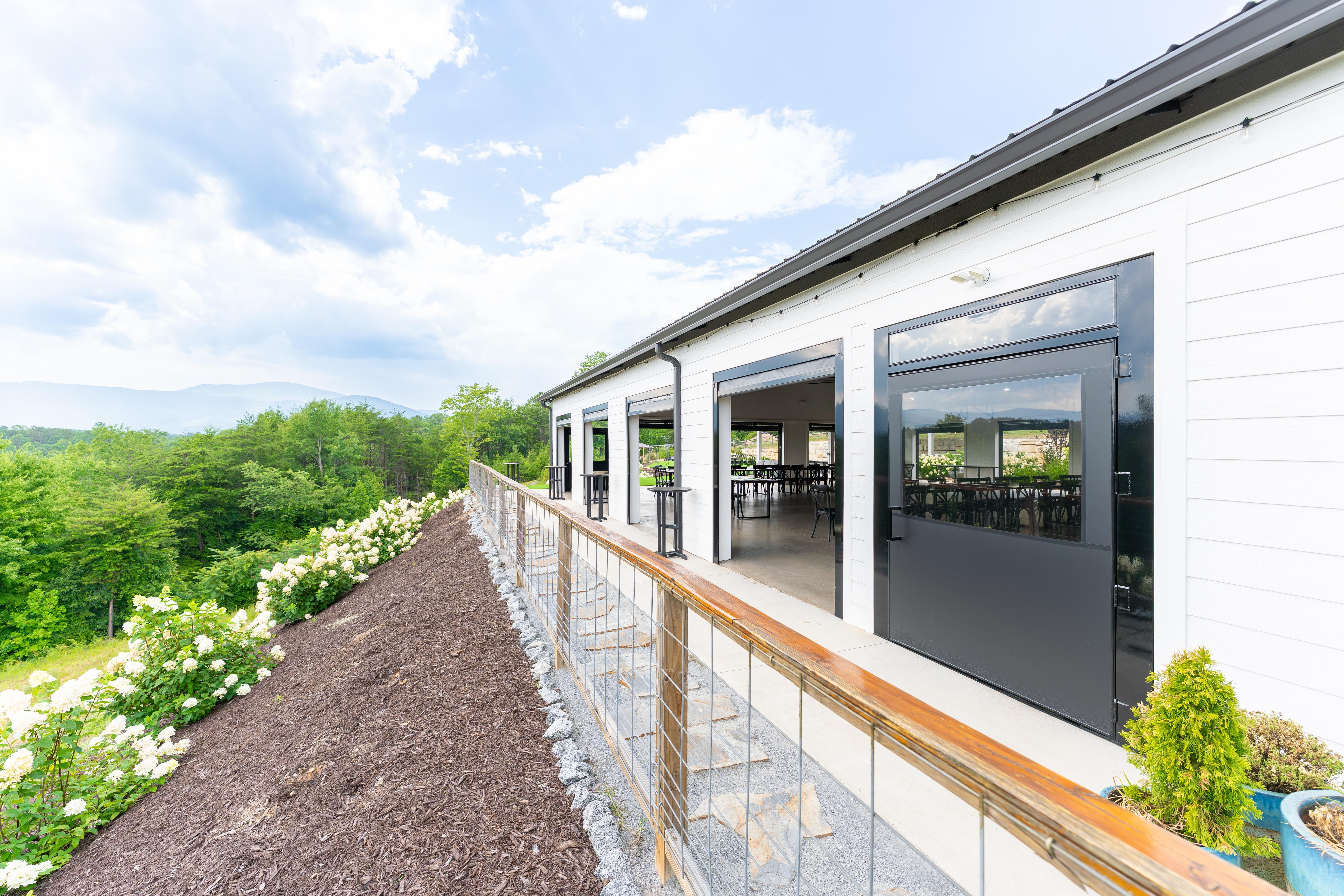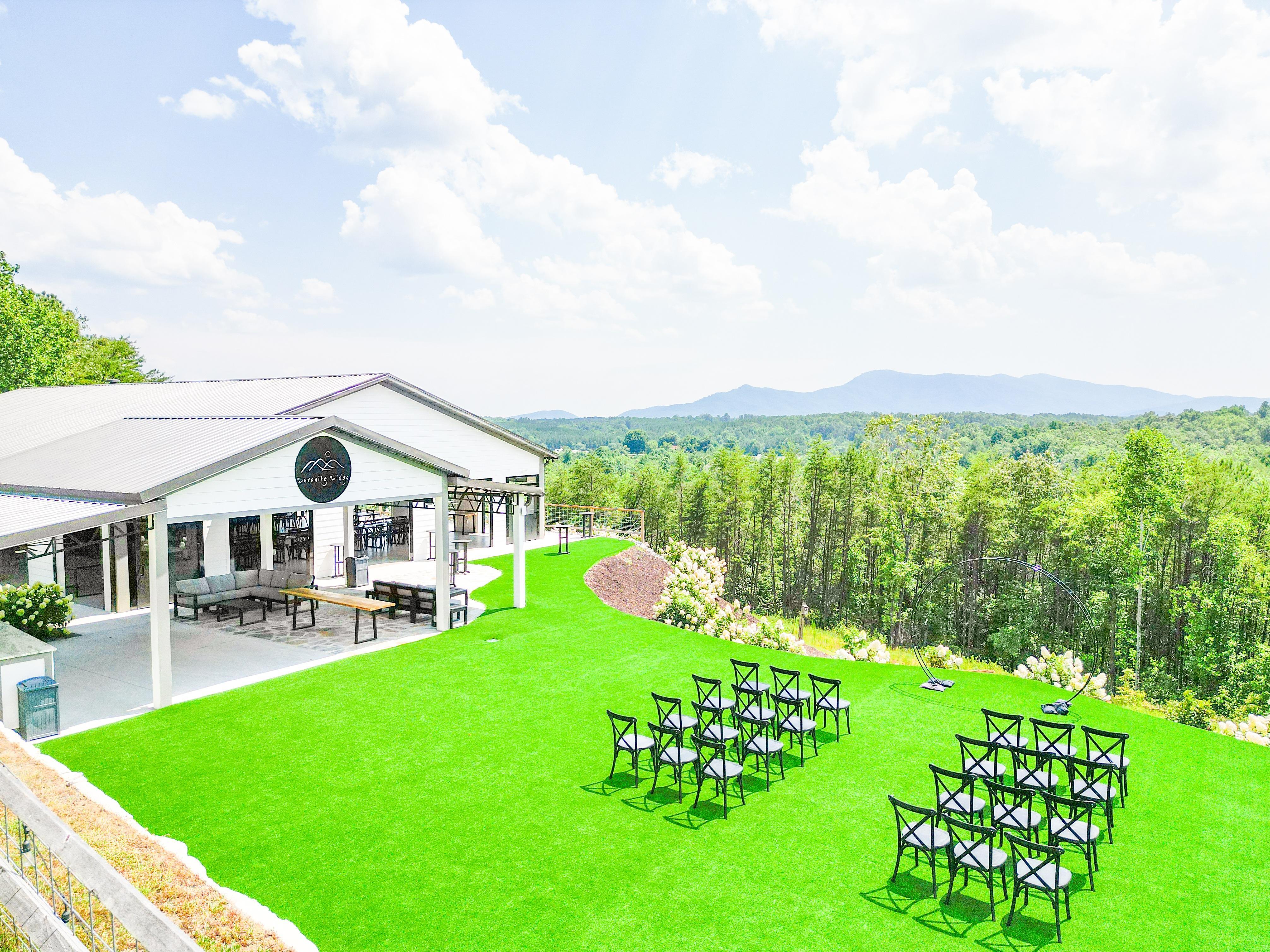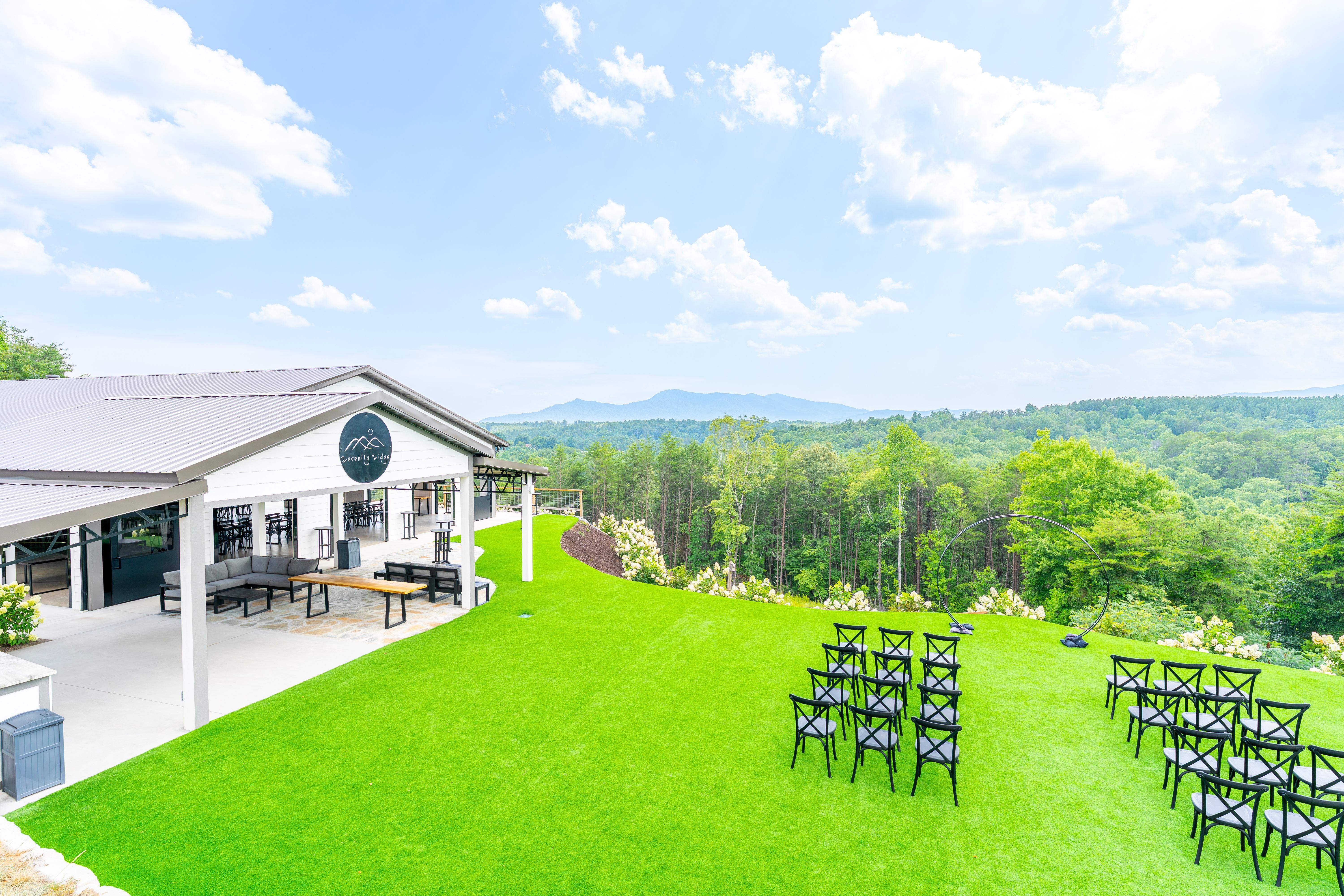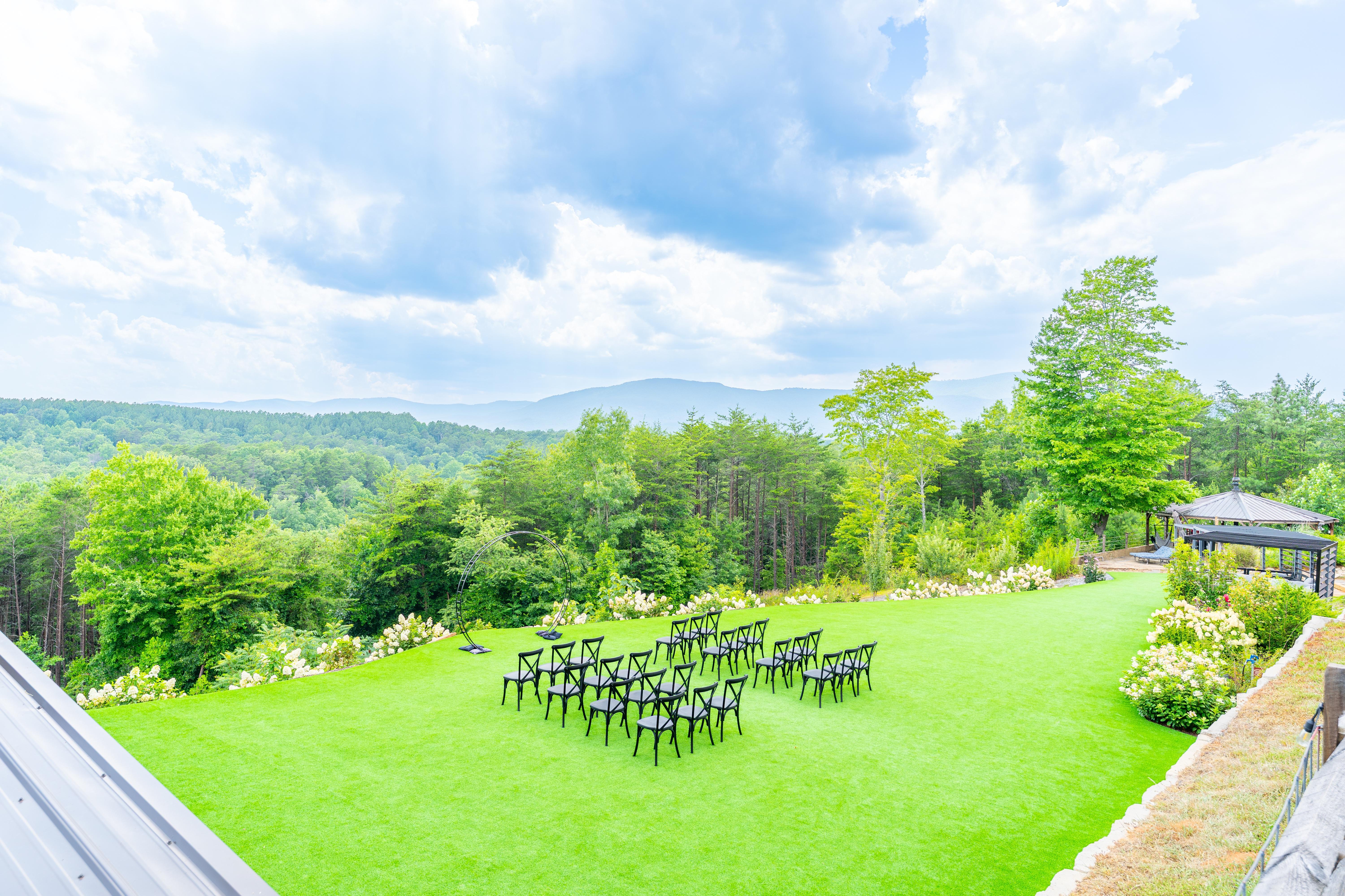🌄 Panoramic Blue Ridge Mountain views ✨ Dedicated ceremony lawn for your “I do” moment 🪑 125 sleek black chairs for guest seating 🎶 Use of Sonos sound system for your playlist 💐 Freedom to customize florals + décor your way 🌿 Optional use of our ceremony arch 📸 Picture-perfect golden hour lighting
