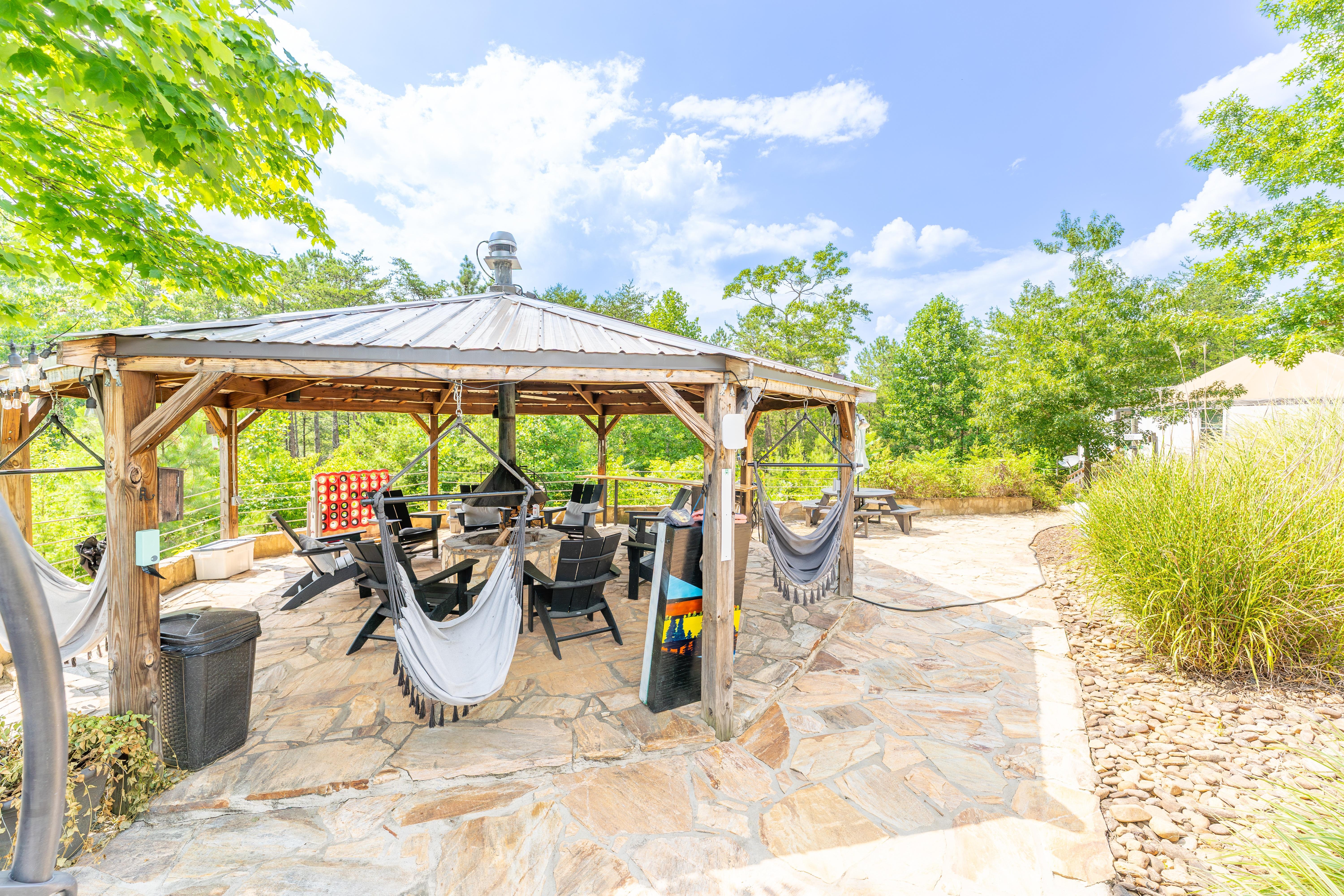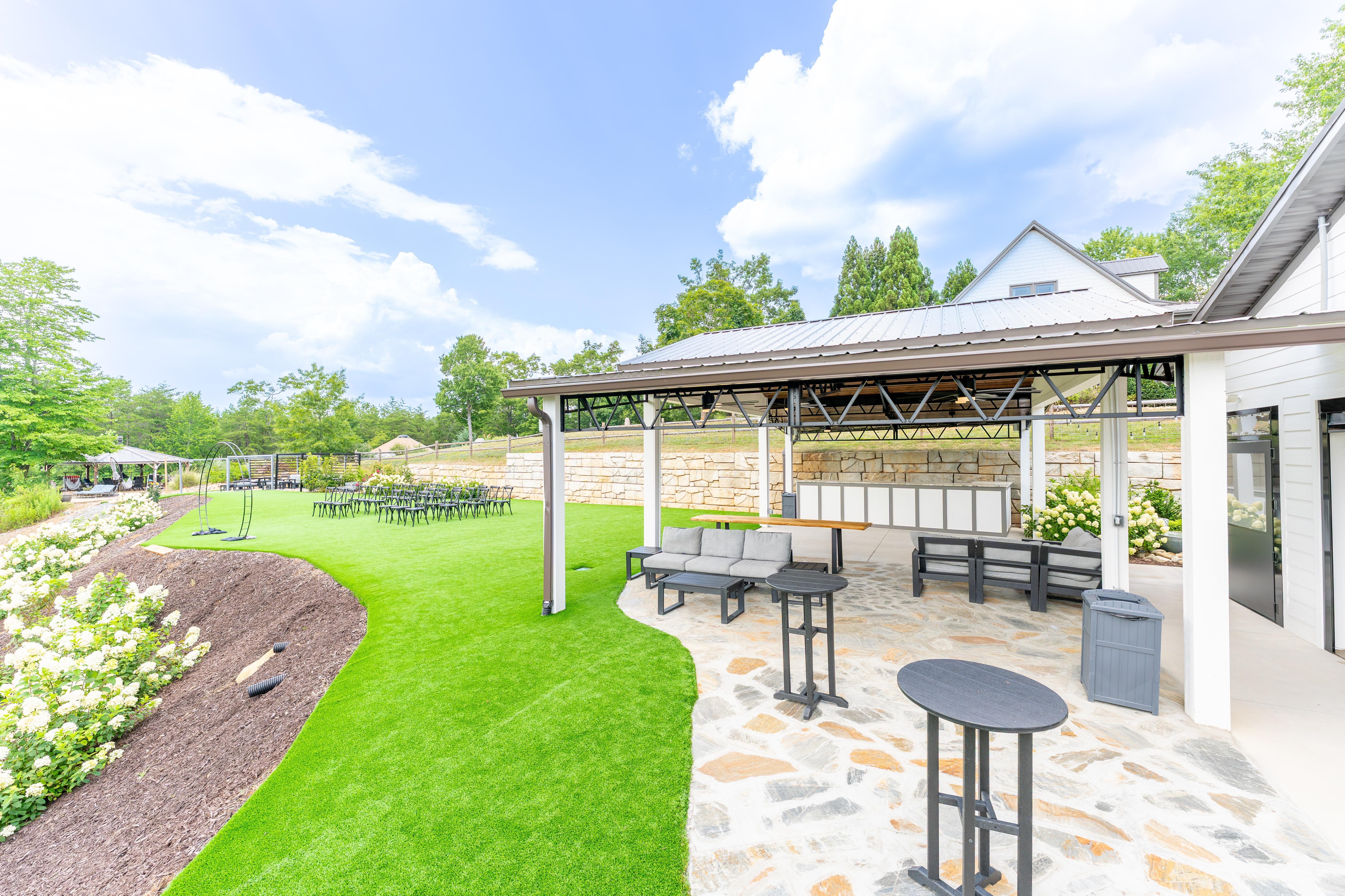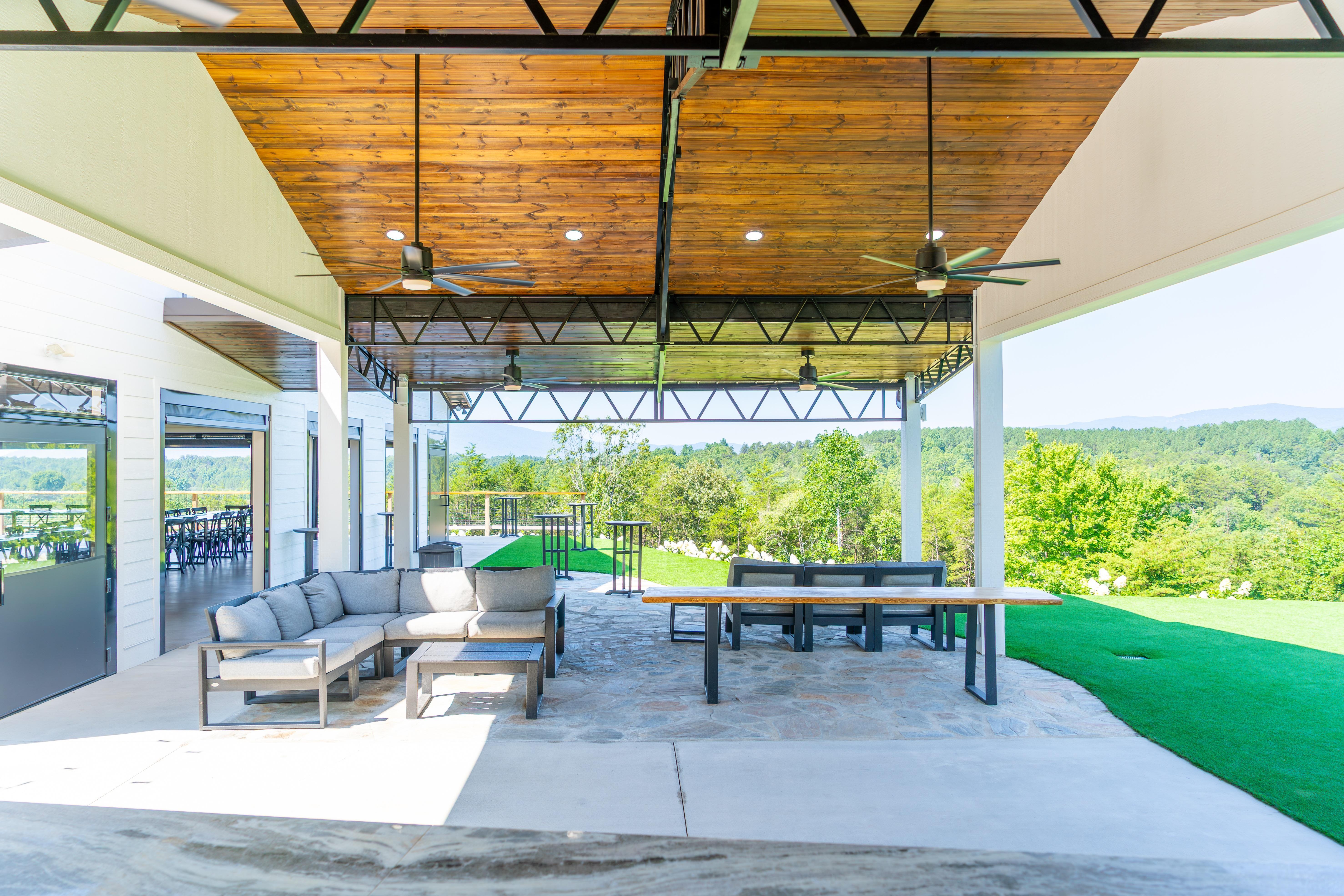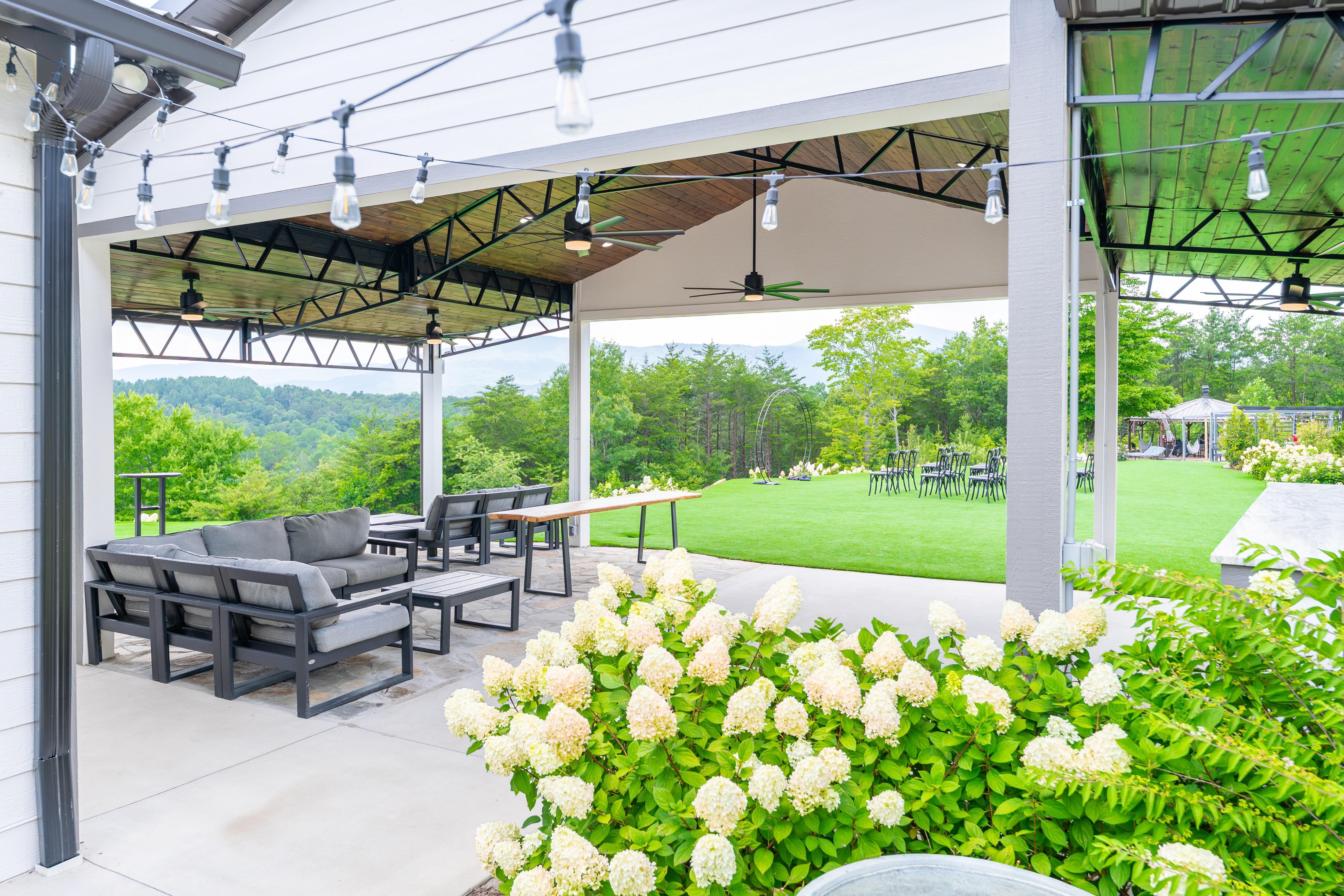 The Fire Pavilion is where the celebration keeps glowing long after the dance floor cools down. Picture guests gathered around the fire, roasting s’mores, sharing stories, and enjoying the crisp mountain air. With pergola seating, lawn games nearby, and Sonos speakers for the perfect playlist, it’s a natural hangout spot that blends relaxation with fun. The Fire Pavilion turns late-night moments into lifelong memories.