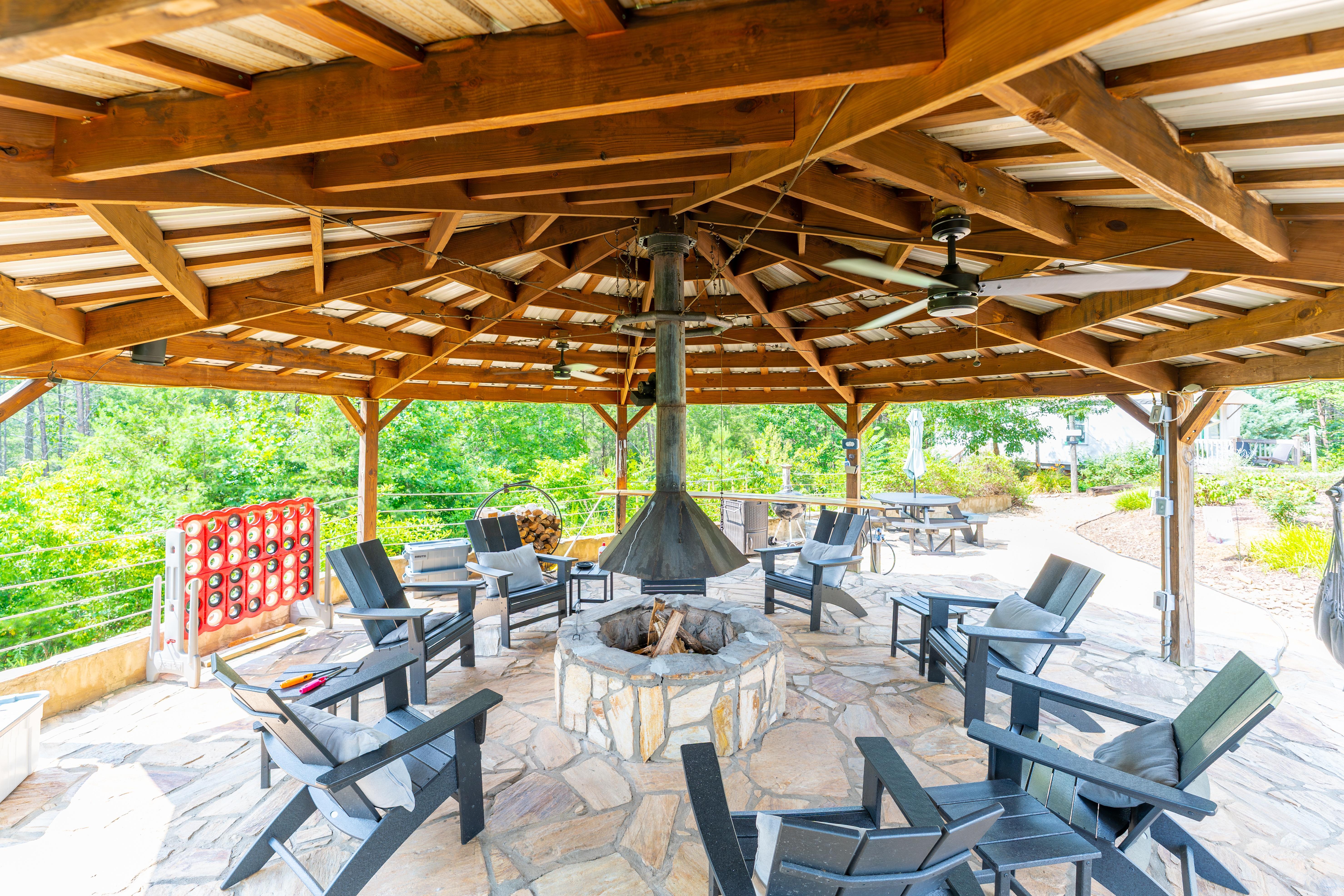 A mountain-chic fire pavilion made for s’mores, late-night laughs, and unforgettable moments under the stars.