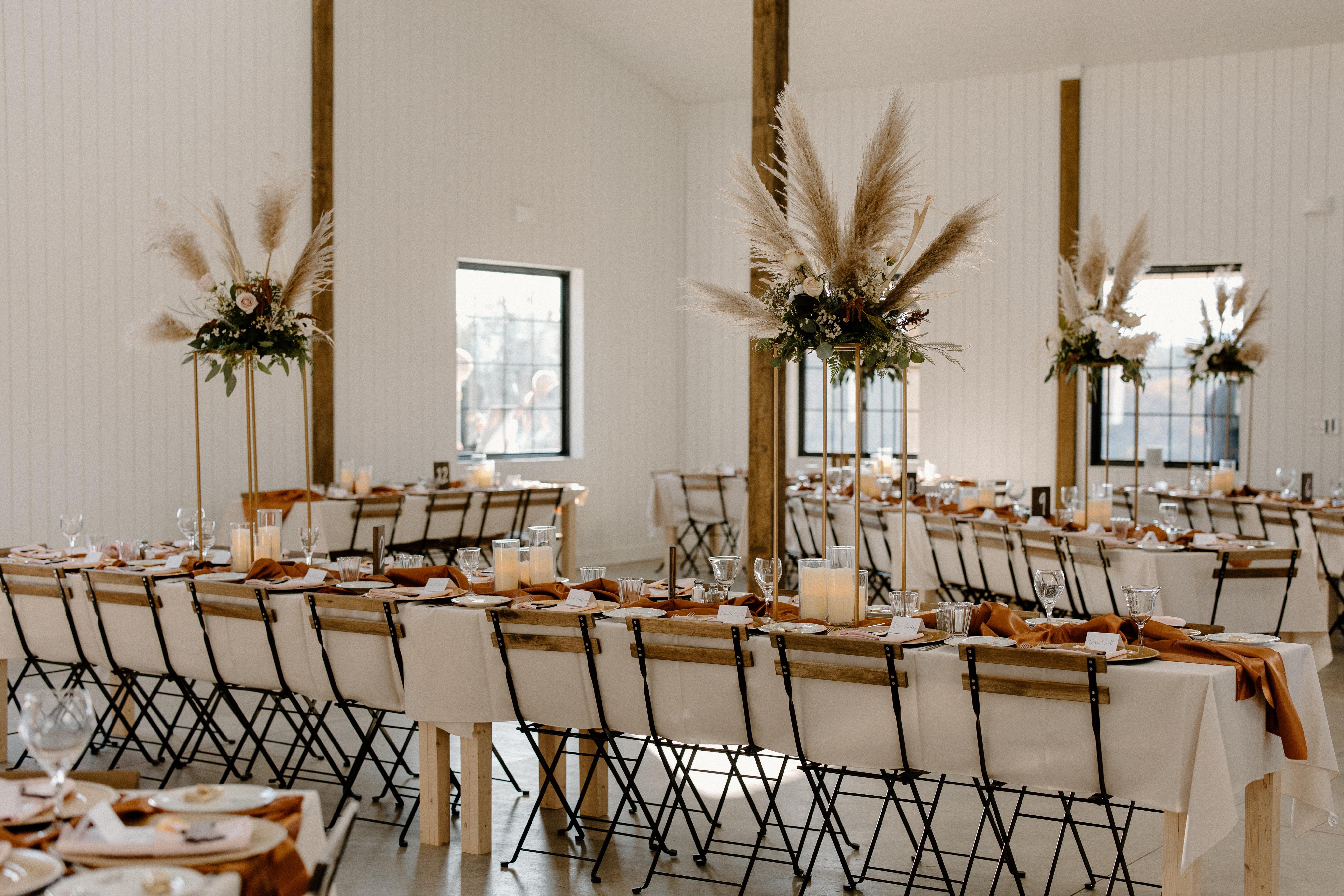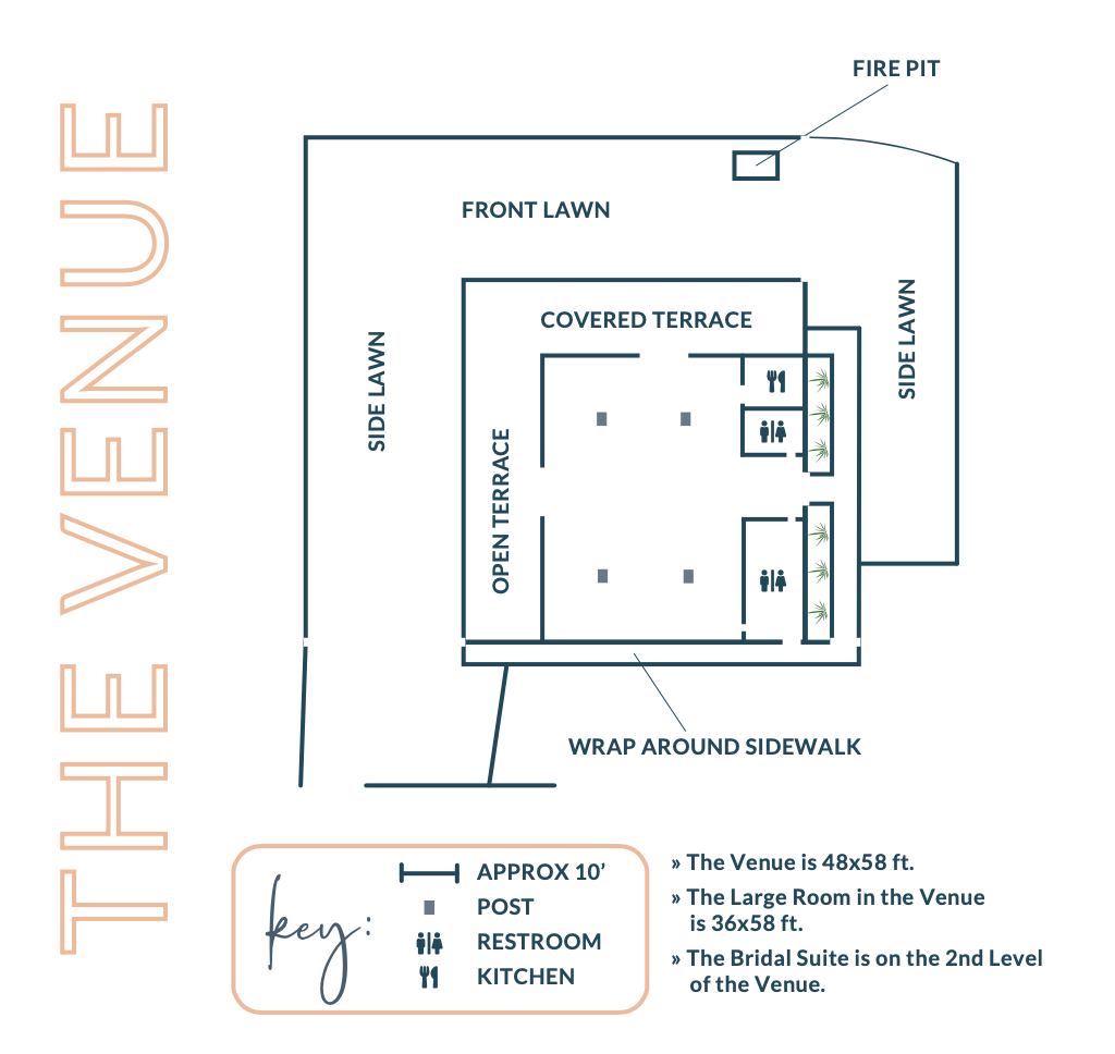 - Custom-built farmhouse tables and chairs for up to 150 guests - Wall dimmable lighting - Market or twinkle lighting for your ceremony, cocktail hour & reception - Lofted Bridal Suite with peak window to reception area - One-hour rehearsal on a separate day - Onsite parking + parking/ fire pit attendant - Two Walkthroughs - Venue Staff - Access to preferred vendors