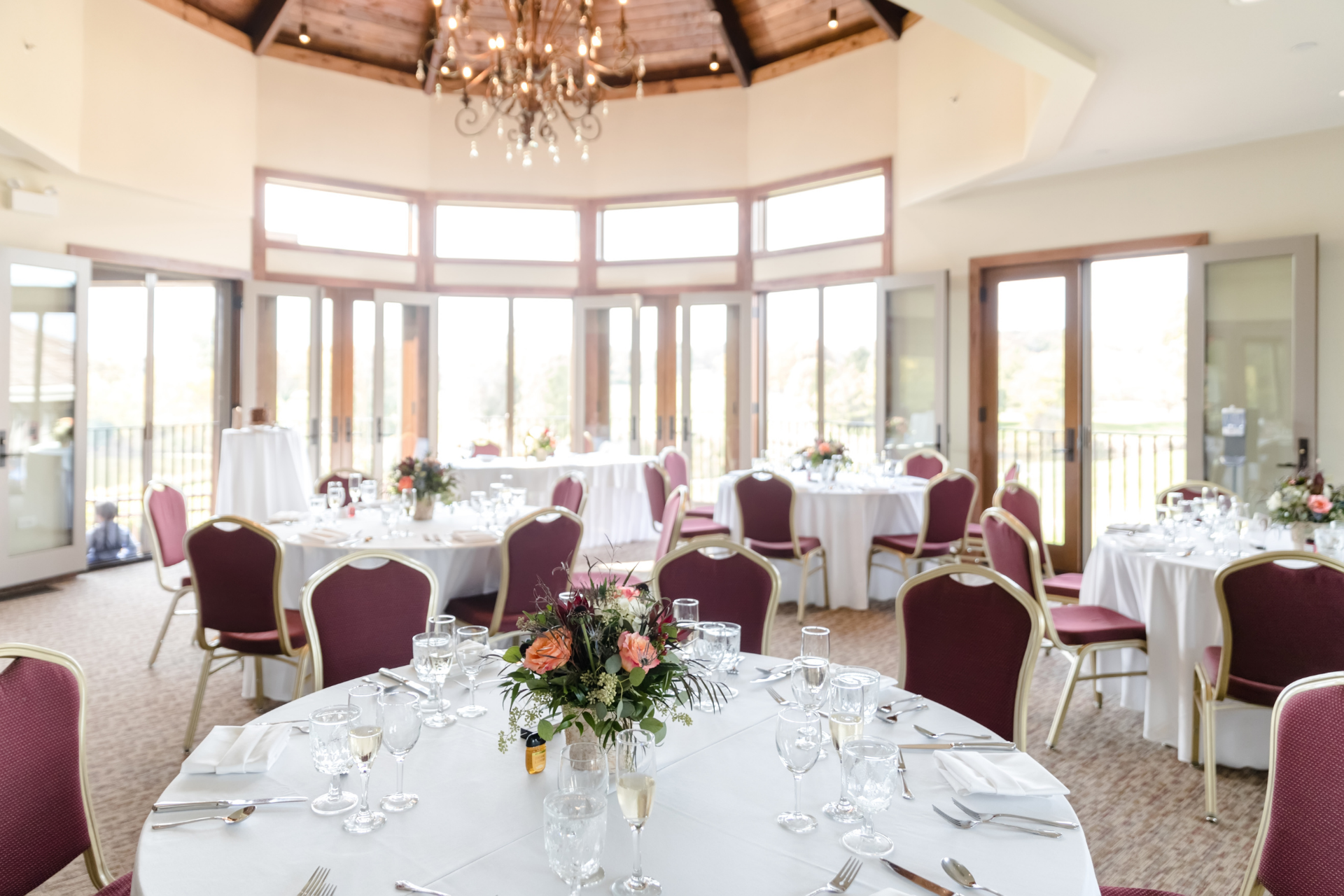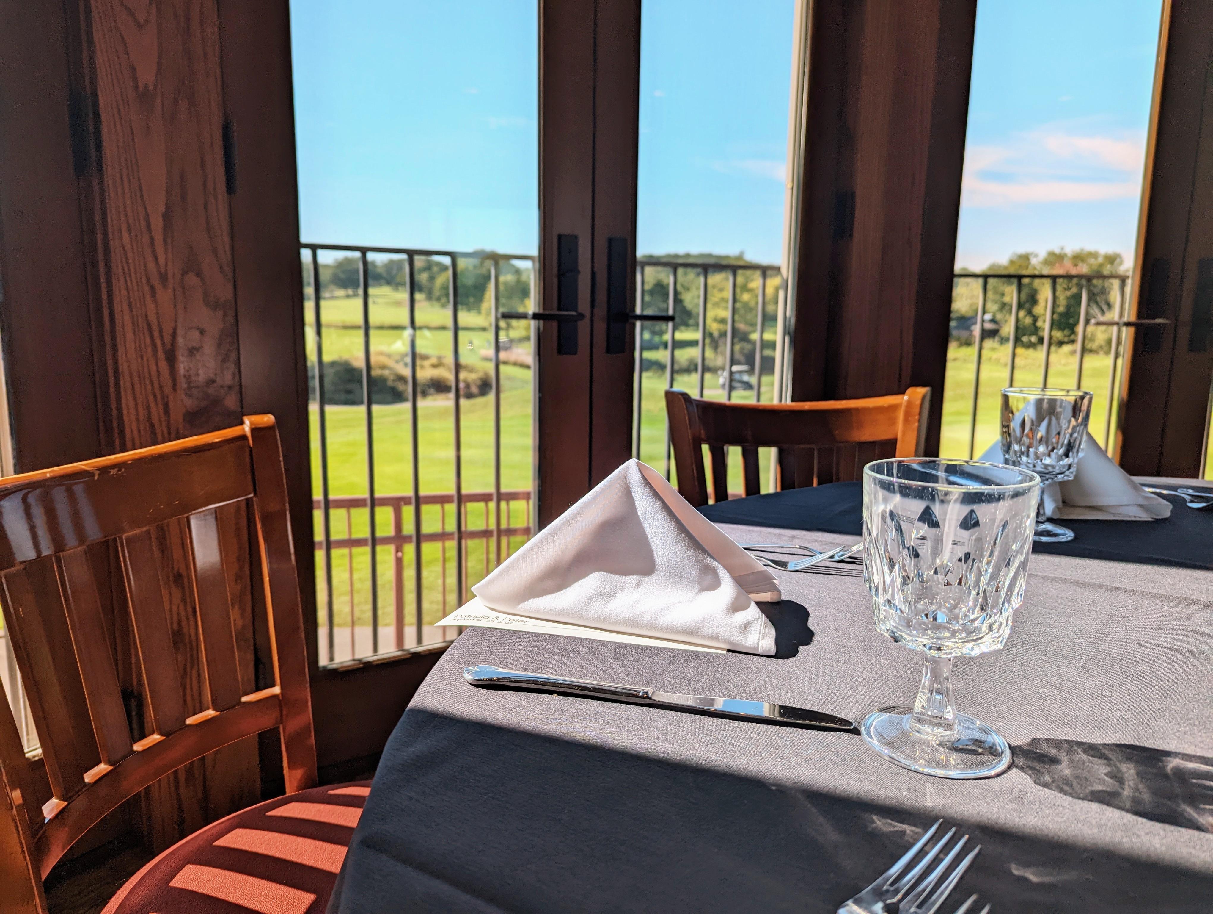 The west-facing Rotunda is a four season space, featuring a stunning beamed ceiling, and floor to ceiling windows which can be opened and screened in the warmer months, and exposed brick accents. The room overlooks the golf course and offers the best sunset views in DuPage County.