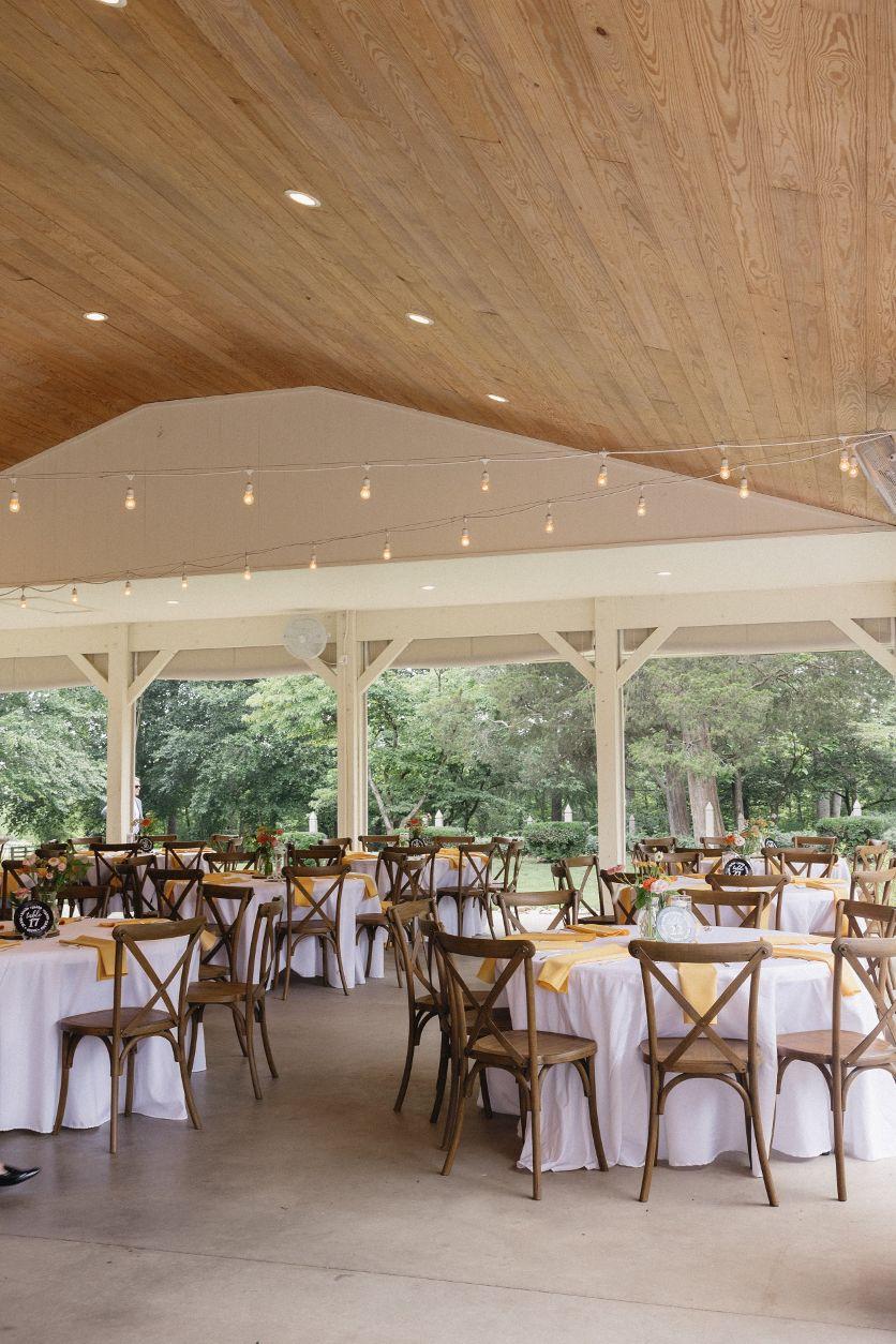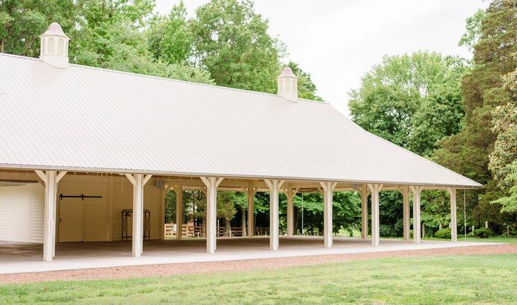The Pavilion - Receptions are typically held in our 40 x 90 pavilion that is equipped with all the trappings needed for the perfect night! The space is finished with a brushed cement floor, optional side walls for cooler nights or rainy days, HVAC equipped restrooms, electrical outlets throughout for a band or dj, and bistro lighting on dimmers strung throughout to keep the ambiance in tact.