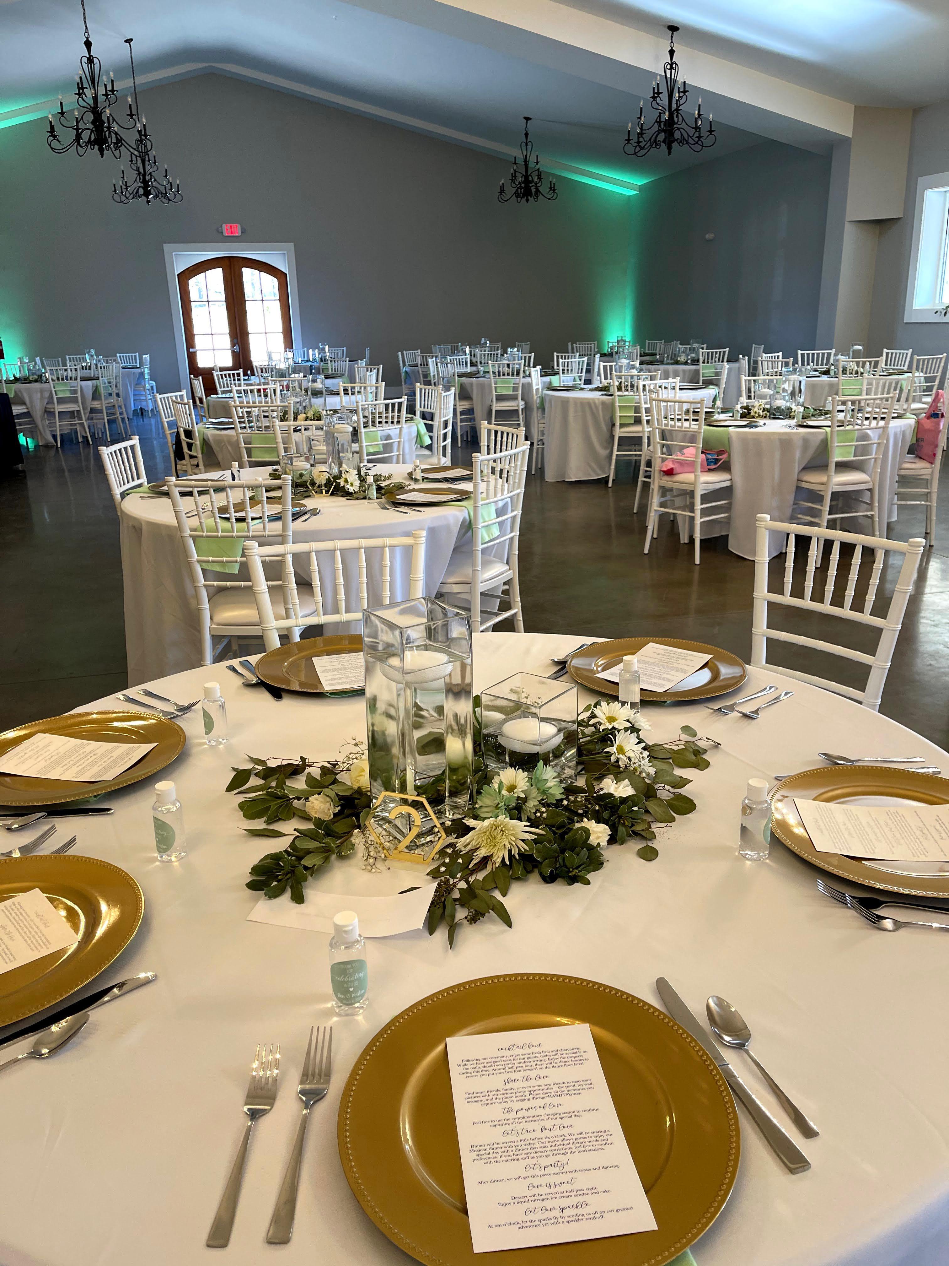 - Set up of Tables, chairs and linens or placed
