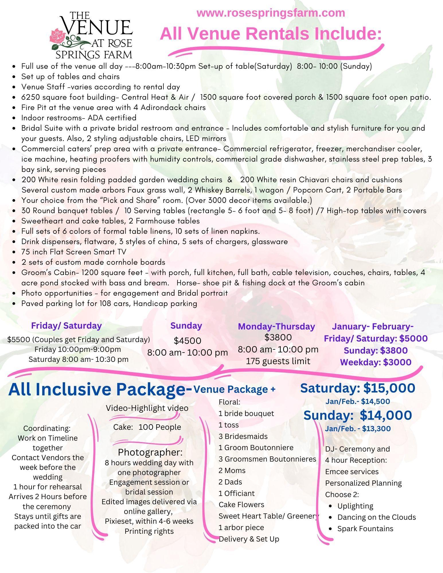 The Venue at Rose Springs Farm packages