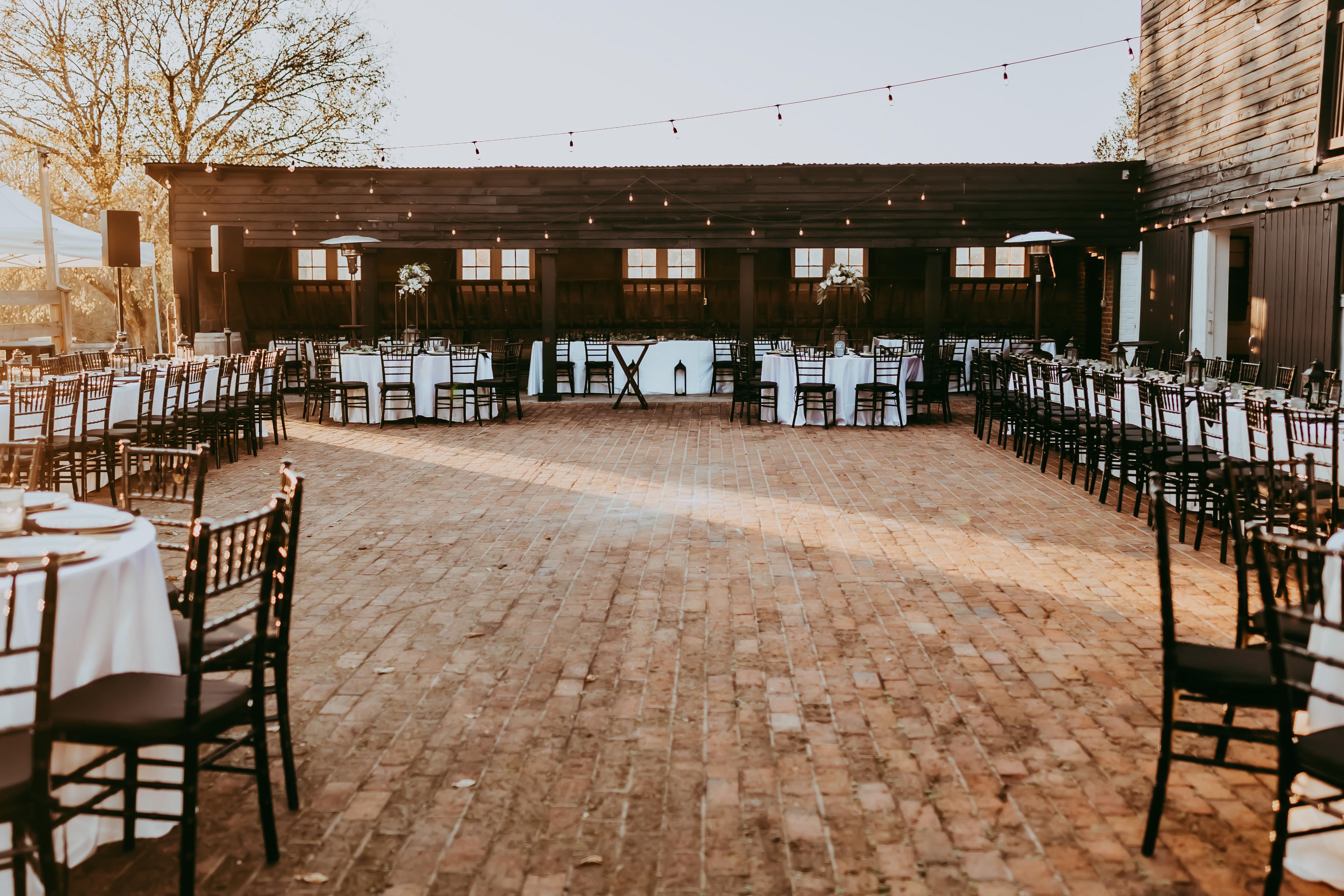 - Mobile Bar - Large Farmhouse Table - Bridal Suite - Restrooms - Bistro Lighting on the Patio - Mobile Fire pit