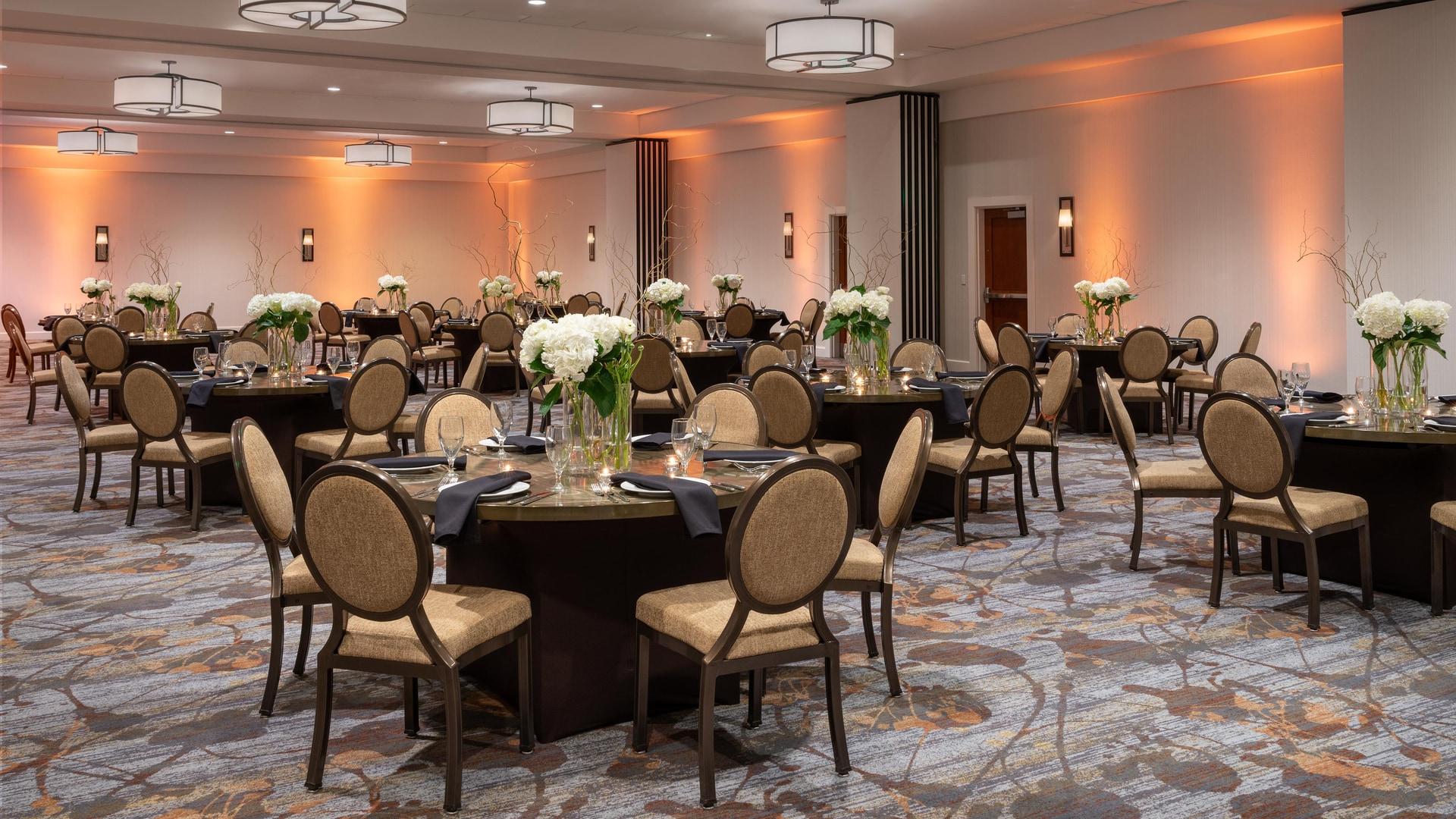 The spacious and well-lit Grand Ballroom can accommodate up to 250 guests in a banquet style Treat your attendees to a delicious selection of food and drinks thanks to our onsite catering Meeting attendees will love our complimentary shuttle to Addison and Galleria Dallas