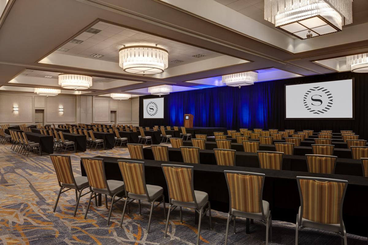 Sophisticated chandeliers highlight our spacious and flexible St. Andrew Ballroom.