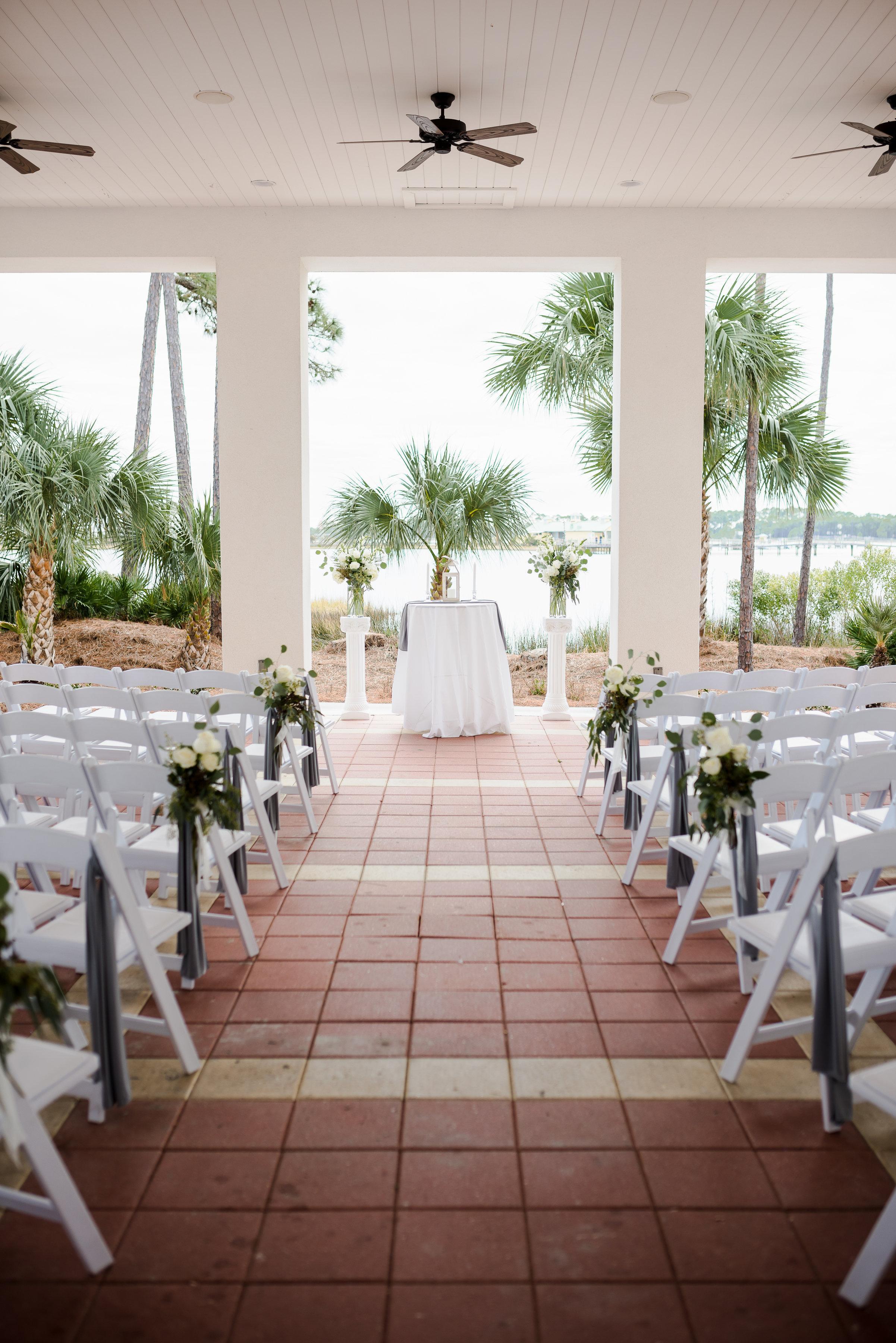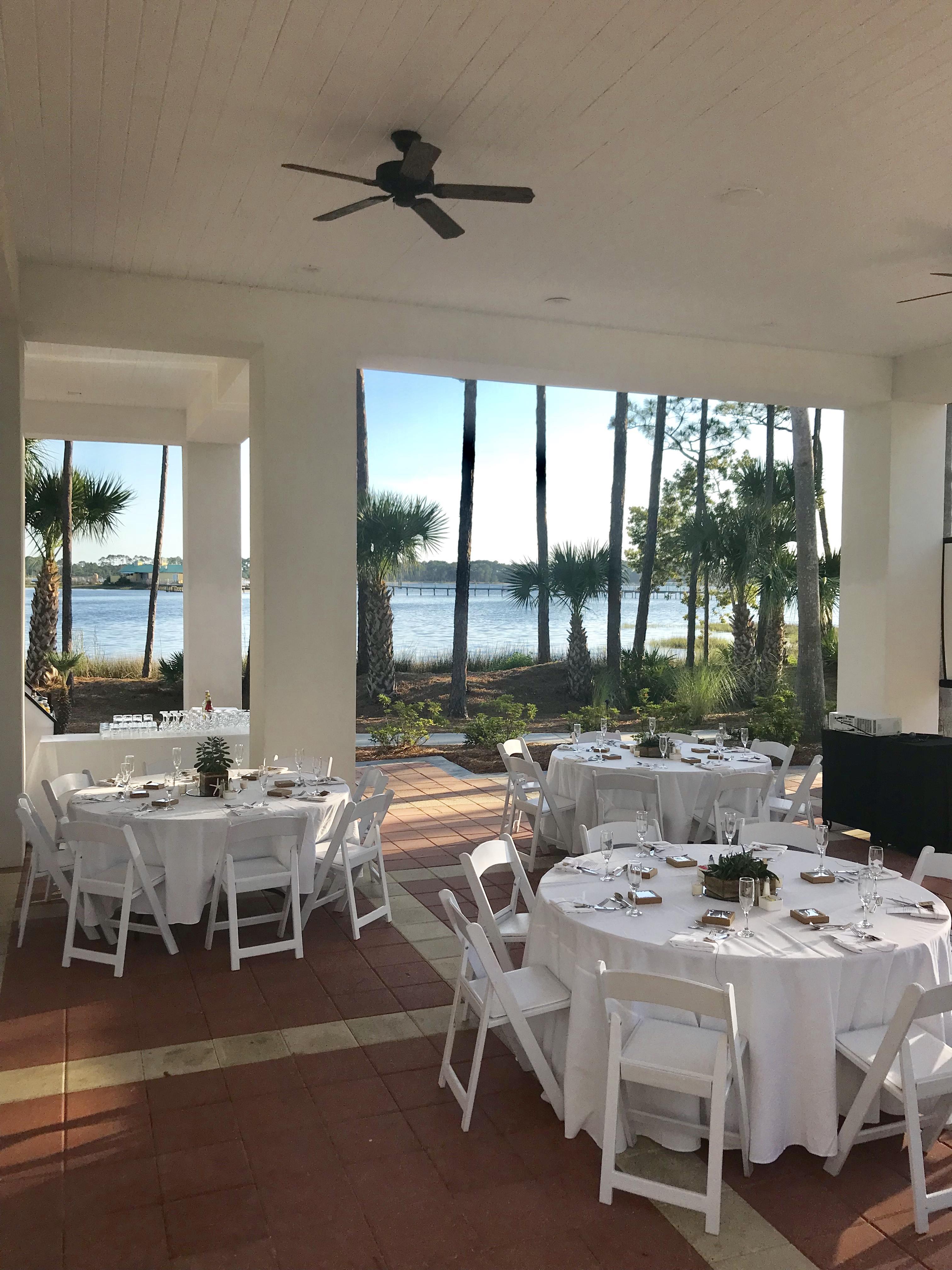 This outdoor covered space is a favorite for all types of wedding events, but an ideal location for a wedding reception after a lawn ceremony. Offering breathtaking views of the bay and an open air feel of Florida creating a memorable occasion for everyone.