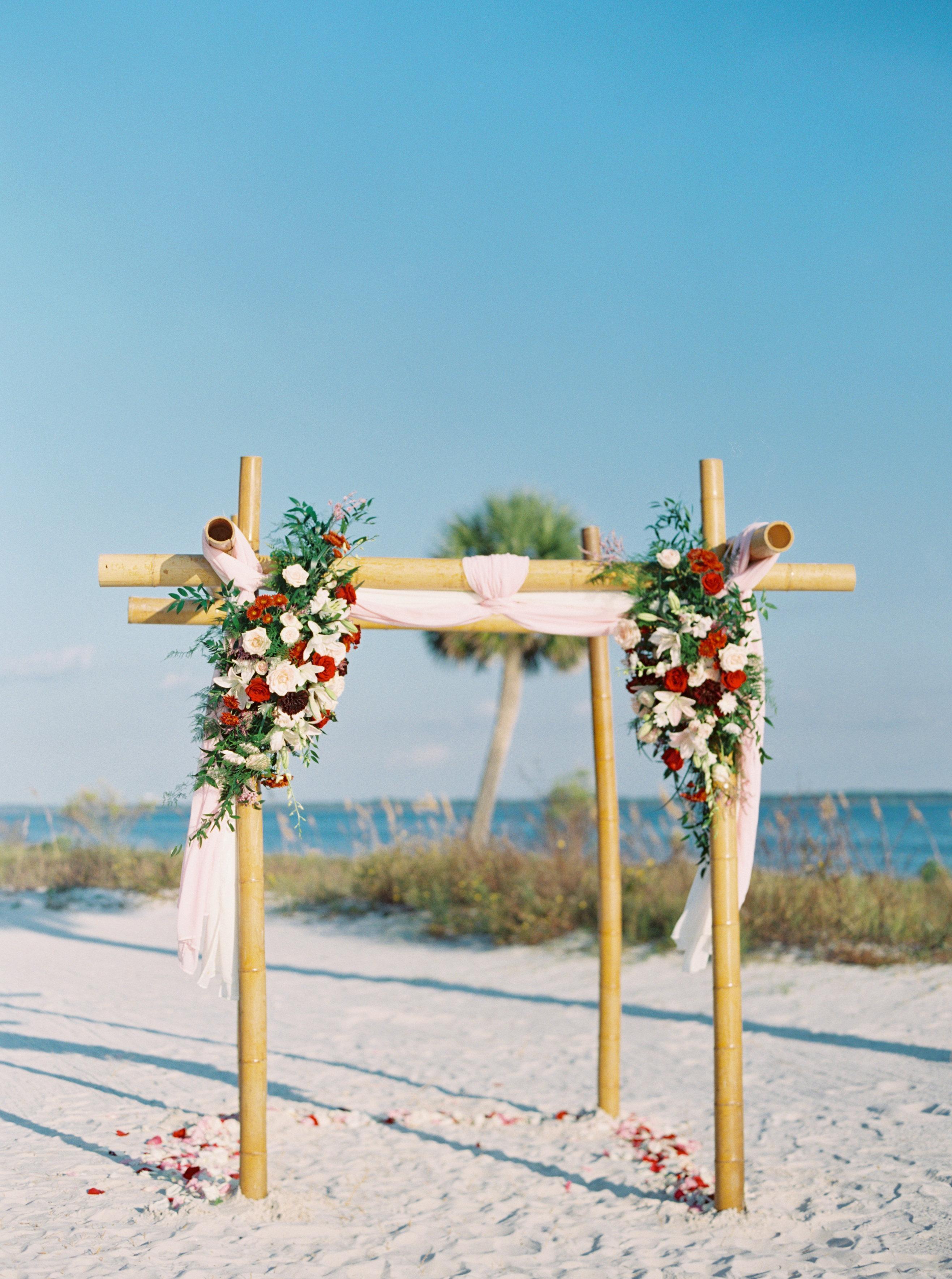 Toes in the sand, breeze in your hair, under the palms at sunset.... that's our Bay Beach wedding venue.