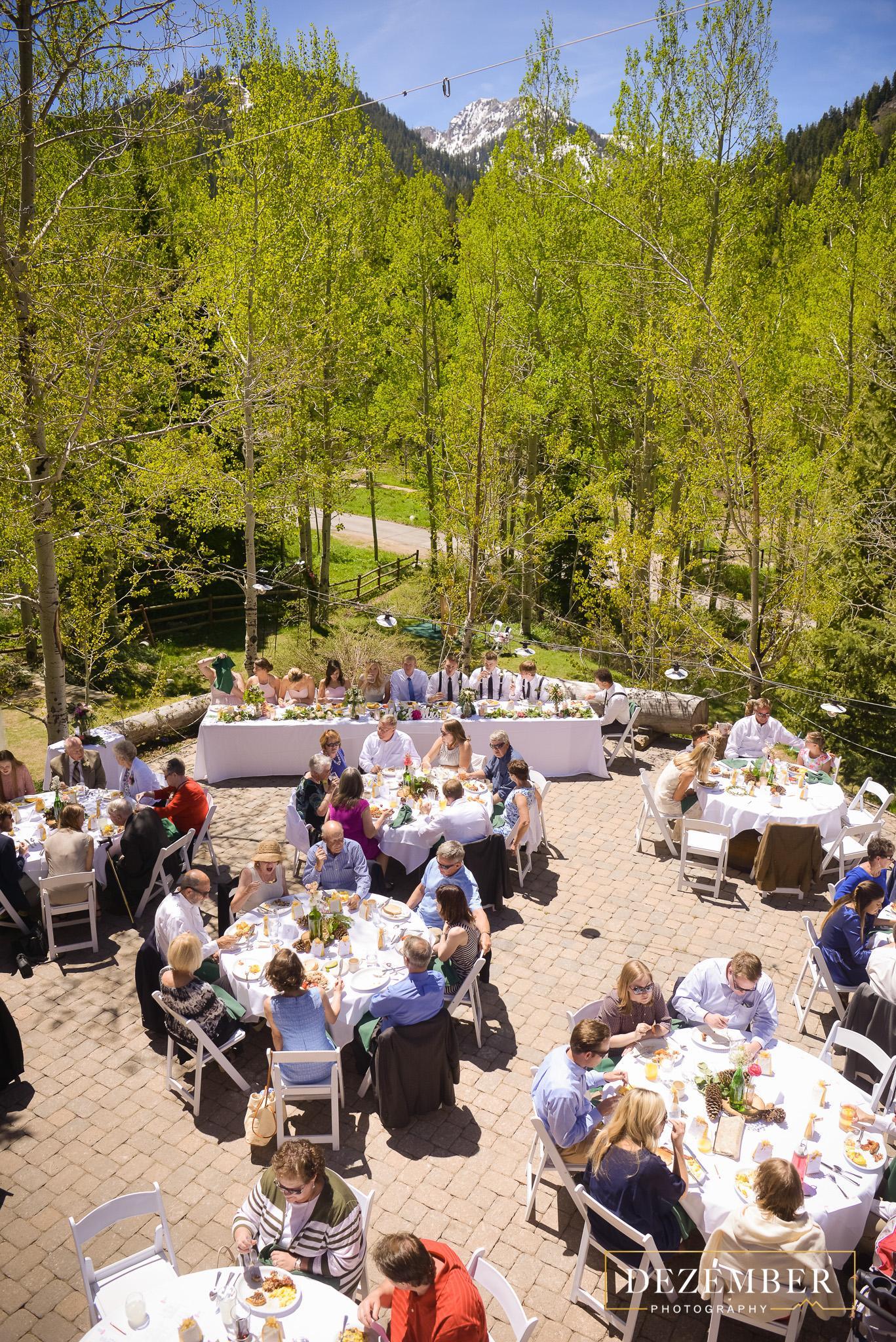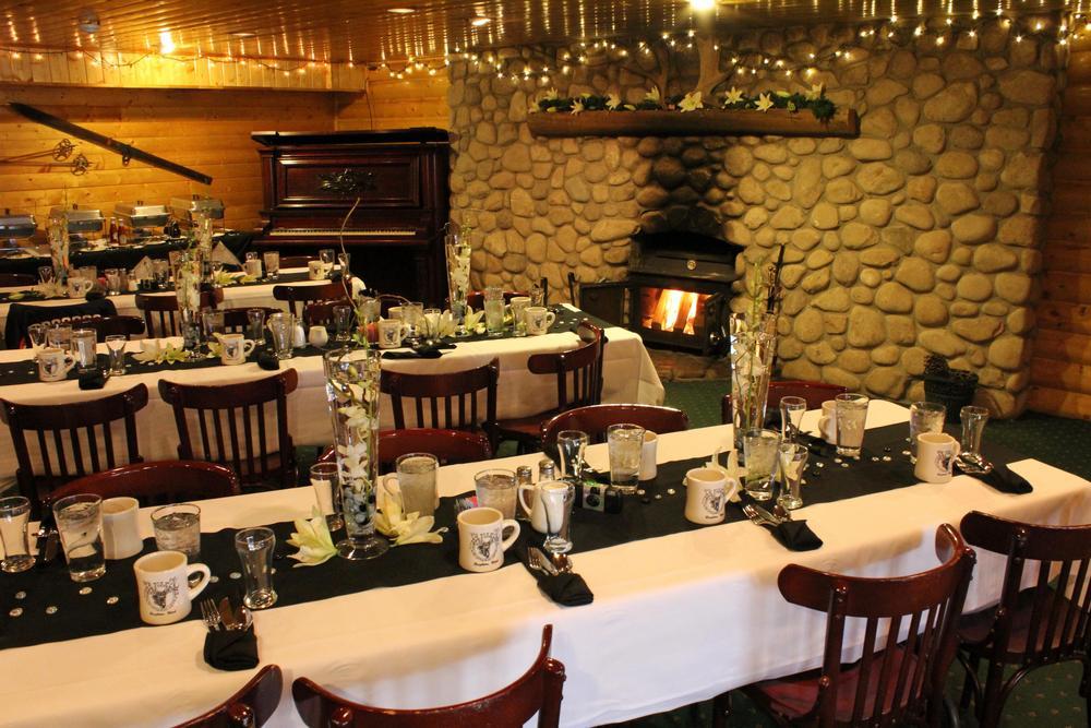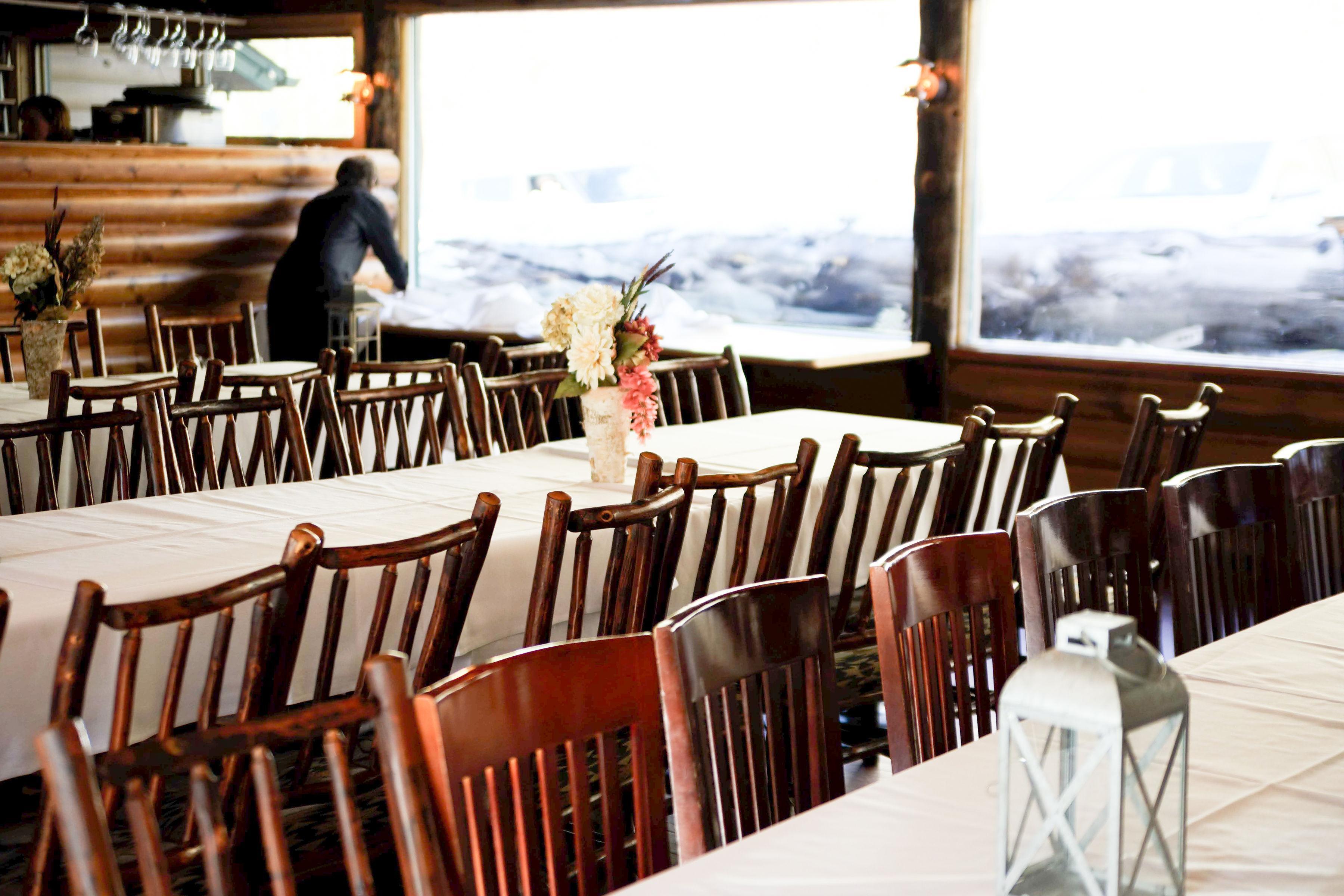 Our banquet facility has an indoor area and a covered patio that flows onto an outside terrace. It’s surrounded by mountains, aspens, and pines. Silver Fork Lodge can seat up to 100 people outdoors and another 50 inside our banquet area.