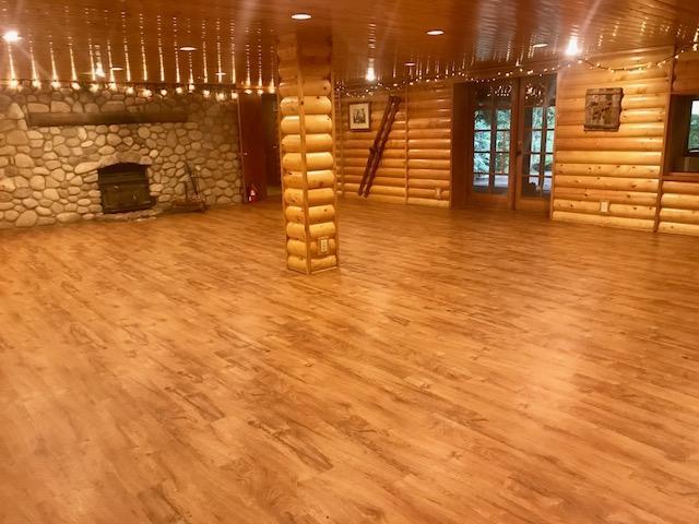 Dimmer for total customized lighting Fireplace for warmth and ambiance White string lights to add to the ambiance Bluetooth Speaker to create your own atmosphere 2 restrooms