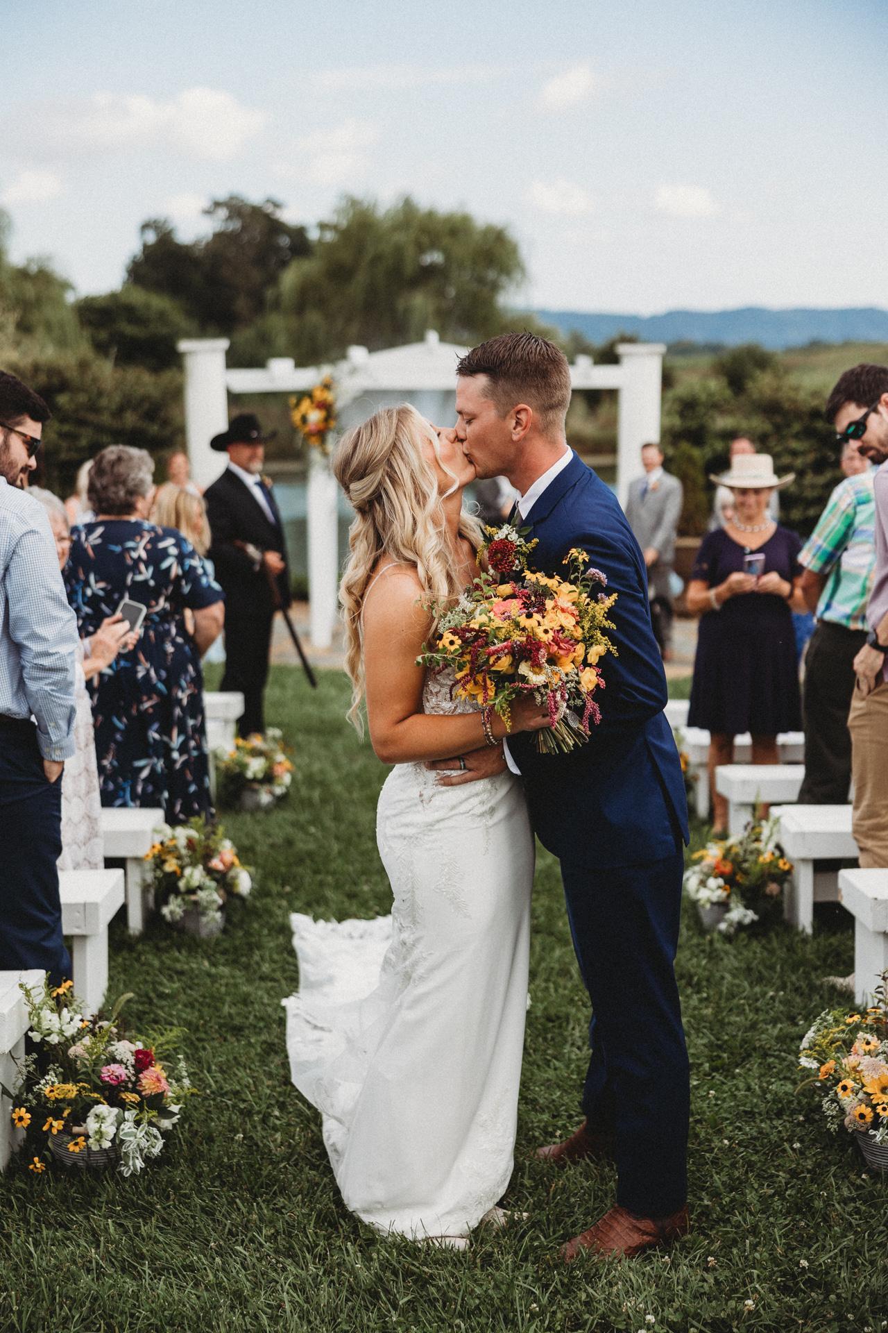 Sinkland Farms is a wedding venue located in Christiansburg, Virginia. Beginning as a dairy farm, this pastoral paradise has since been transformed into a premier events space by Susan Sink and her family. The Sink family is proud to host some of the county’s finest family gatherings, and the farm was awarded Best of Virginia 2018 by Virginia Living Magazine. Couples are invited to incorporate the countryside charm of Sinkland Farms into their wedding, bringing loved ones together among the majestic views.