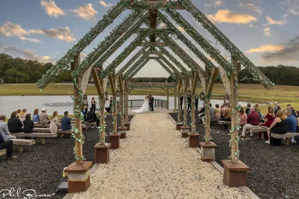 Sixty Acres, A Gathering Place is a barn wedding venue in Mount Pleasant, North Carolina. Ideally located among scenic vistas, this magnificent location contains a spacious traditional barn perfect for special occasions away from bustling city life. Combining elements of rural charm with contemporary amenities, it is a suitable space for hosting an elegant country-style celebration. The versatile property will wow your guests and provides 60 acres of picturesque scenery that your photographer will love. Sixty Acres, A Gathering Place’s brand new barn, provides a chic yet pastoral place for you and your loved ones to celebrate. The venue provides you with several stunning indoor and outdoor wedding ceremony options and accommodates up to 250 wedding guests. Whether you would prefer to say your precious 'I dos' on their expansive lawn or have a night full of dancing in the two-story barn, they can make it happen.