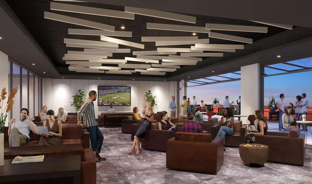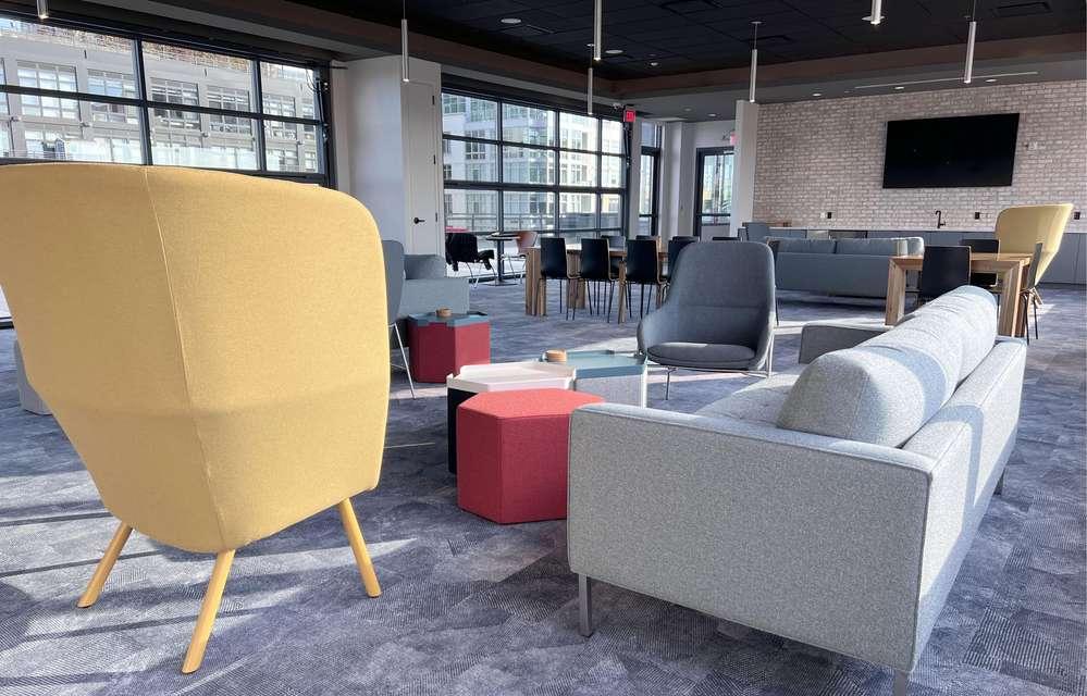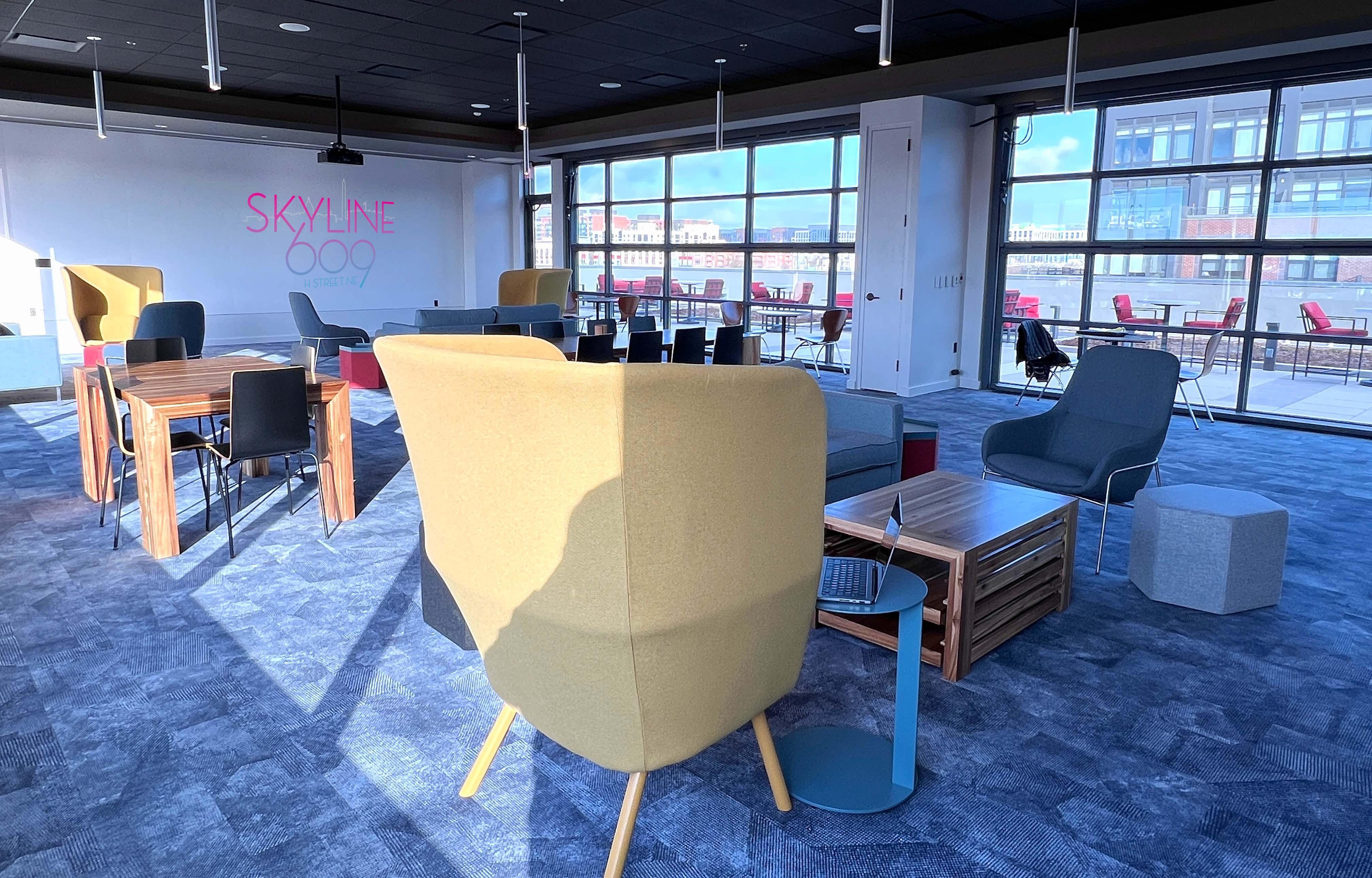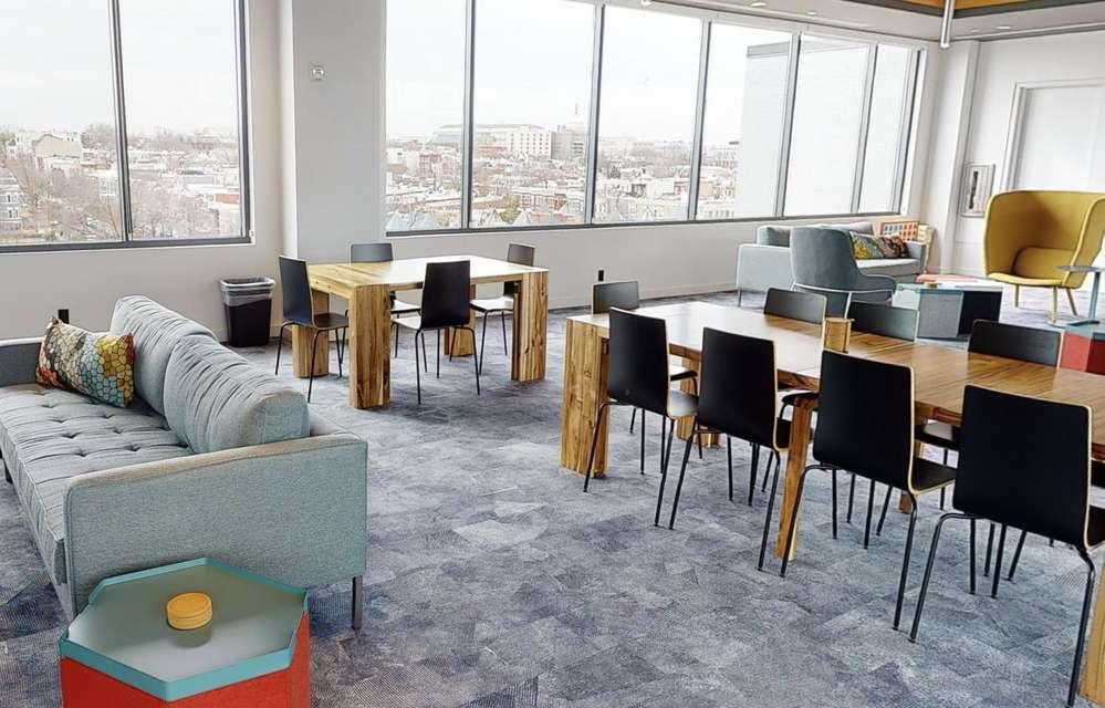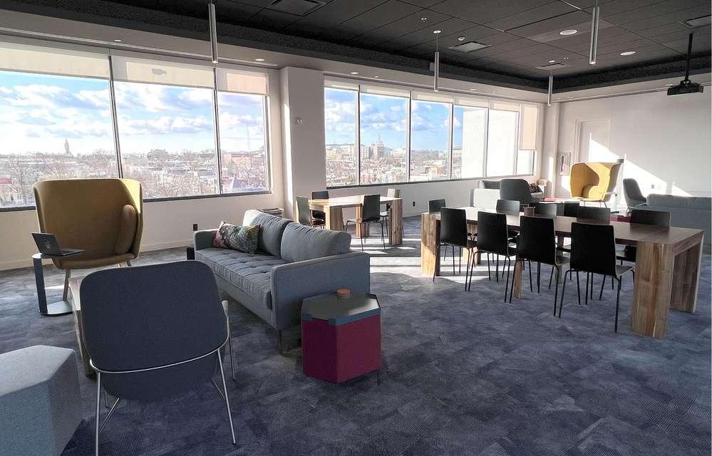 INDOOR SPACE INCLUDES: - 70’ of floor-to-ceiling windows with unobstructed views of Capitol Hill - Seating for up to 52 people including three mid-century modern seating groups and two expandable hardwood tables for 4 to 24 guests - Catering kitchen space, sink, ice maker and mini-fridge - Built-in audio system with DJ plug-in and Bluetooth access - 10’ drop-down screen with laser projection and 80’ 4K TV with HDMI and VGA hookups, controlled from a single panel - LEED Certification