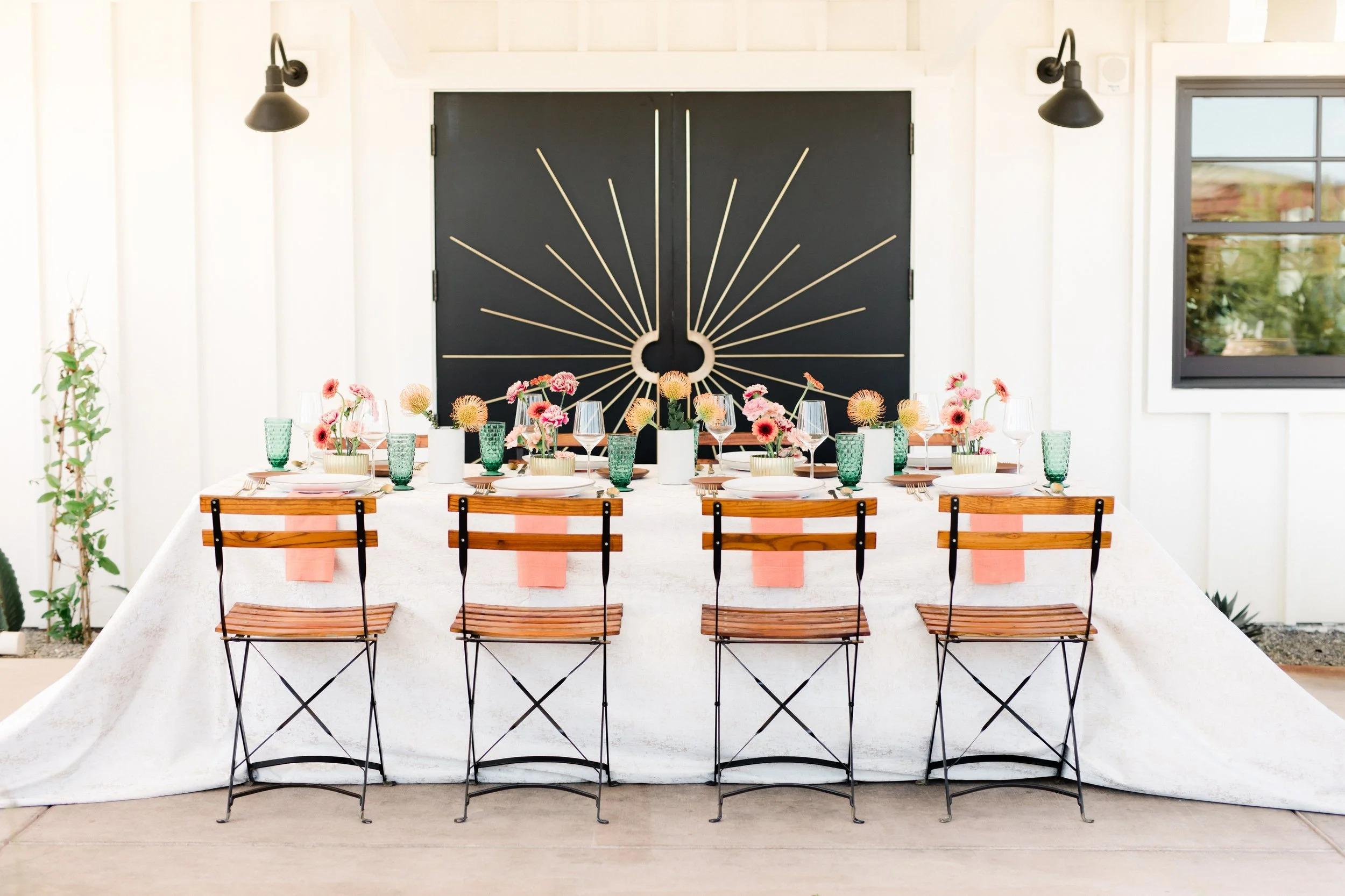 Skyview Los Alamos offers a unique blend of retro charm and modern luxury for a truly unforgettable wedding. Perched on a hilltop overlooking the Santa Ynez Valley, this iconic mid-century property provides a scenic backdrop for a wine country celebration. The hotel is able to host up to 120 guests, offering a variety of event spaces for your ceremony, reception, and after party. Say your vows with a panoramic view of the valley, host a sun-soaked cocktail party by the heated, 21-and-over pool, or take photos by our original 1950s marquee. Whether you're planning a full wedding weekend or a stylish reception, Skyview Los Alamos is the perfect setting for a celebration.