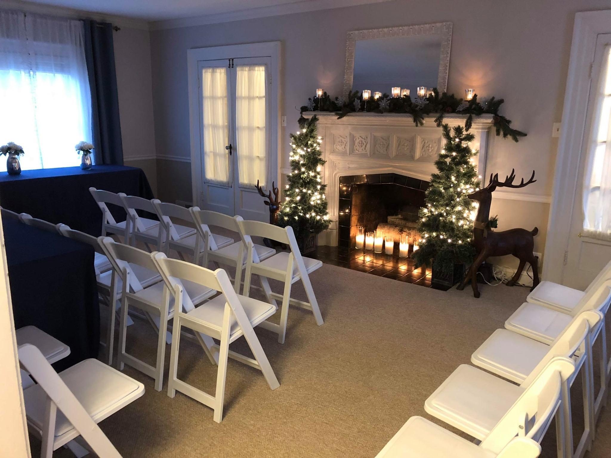 This room features a beautifully restored fireplace and can be set up for either a small wedding ceremony or seated dinner. The room can fit 26 for a seated dinner and 40 for a ceremony.