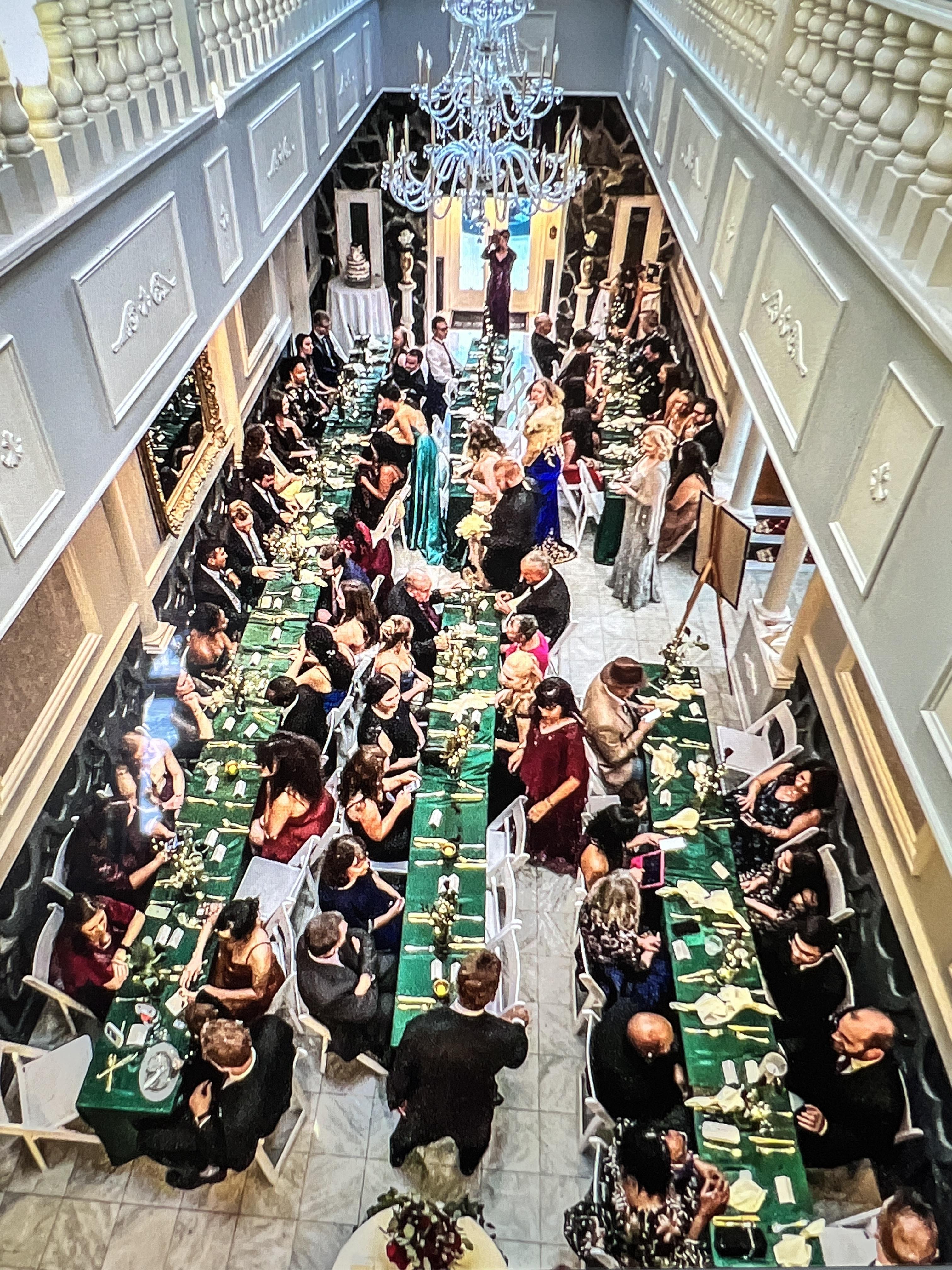 The Knights Hall is a magnificent blend of grandeur and historical charm. Its marble floors gleam under the soft glow of multiple crystal chandeliers, casting an enchanting light across the expansive space. Walls adorned with medieval tapestries depict scenes of chivalry and courtly life, adding a rich sense of history and texture to the room. Dominating the Great Room is a three-story granite fireplace, an architectural marvel that serves as both a focal point and a cozy gathering place.