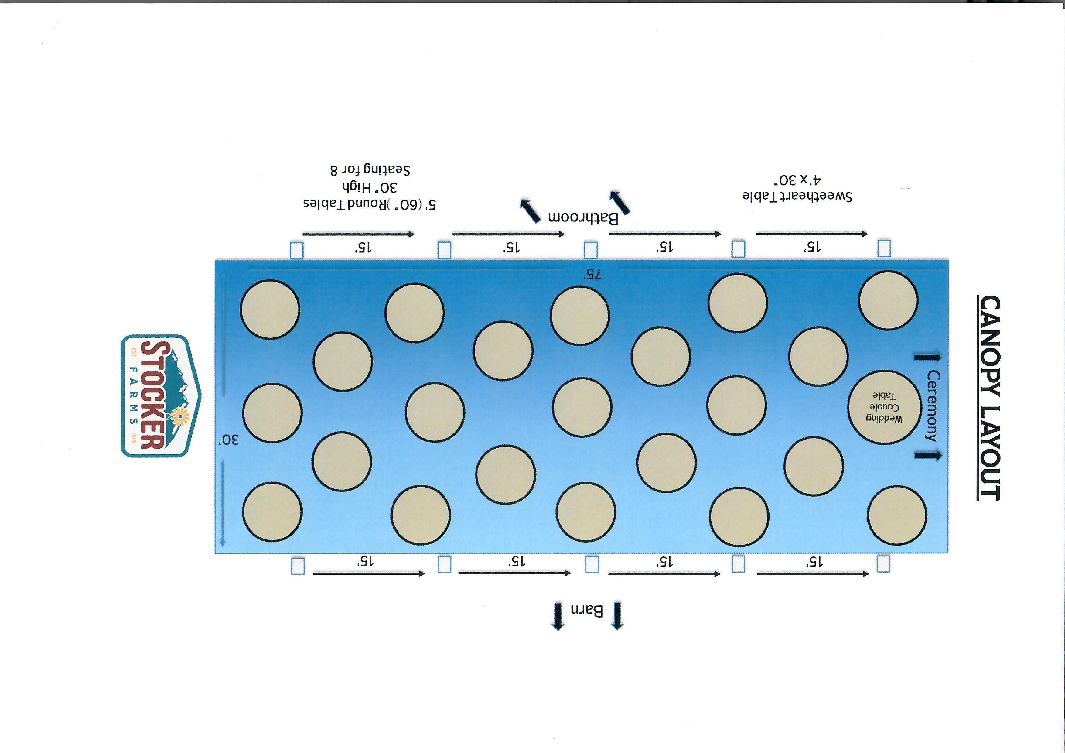 Our Canopy Tent provides a beautifully covered setting for your reception dinner, combining the charm of an outdoor space with the comfort of full overhead protection. It accommodates up to 25 round guest tables (seating 8 per table), plus a sweetheart table and a dedicated spot for the wedding couple. The tent offers easy access to the barn and nearby restrooms, making it a convenient and inviting space for guests to enjoy their meals, toasts, and conversation throughout the evening.