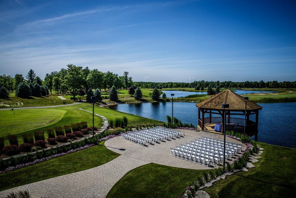 Solitude Links is the perfect venue for weddings and wedding receptions with its three unique and beautiful banquet halls accommodating 25 to 600 guests and an extensive selection of menu items. All halls in the banquet center have access to the decks and patio. A beautiful gazebo and waterfall overlook the lake and offer a perfect, picturesque setting for a wedding ceremony. By choosing Solitude Links to host your upcoming wedding, you are allowing yourself to have a completely customizable experience. Our outstanding management team and excellent staff will guide you through the planning process with ease!